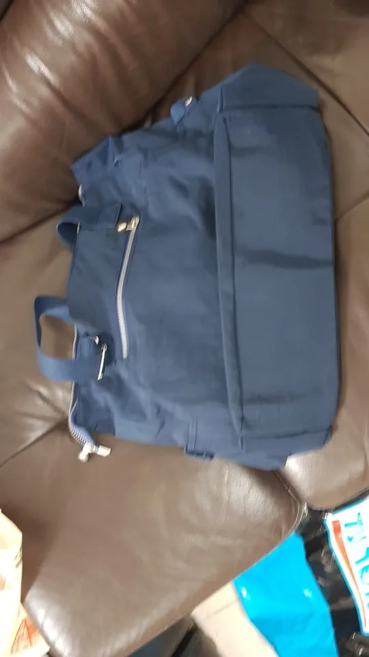 Прибыл в Великобританию в течение 16 дней, а затем застревал в аэропорту почти 3 недели. Сумка большая, больше, чем я думал, но мне нравится. Есть Пластилин на ощупь, но за эту цену это нормально. У него есть 3 кармана на молнии спереди, один сзади и один внутри, два кармана по бокам с застежкой на пуговицы. Мне нравится.