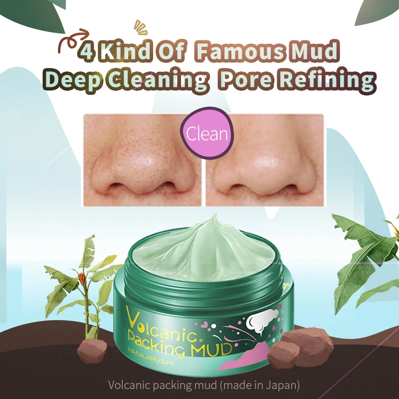 Глиняная маска HANAJIRUSHI, вулканическая грязевая маска для лица, очистка пор, удаление черных точек, клубника, разглаживание носа, увлажнение, отбеливание, 80 г