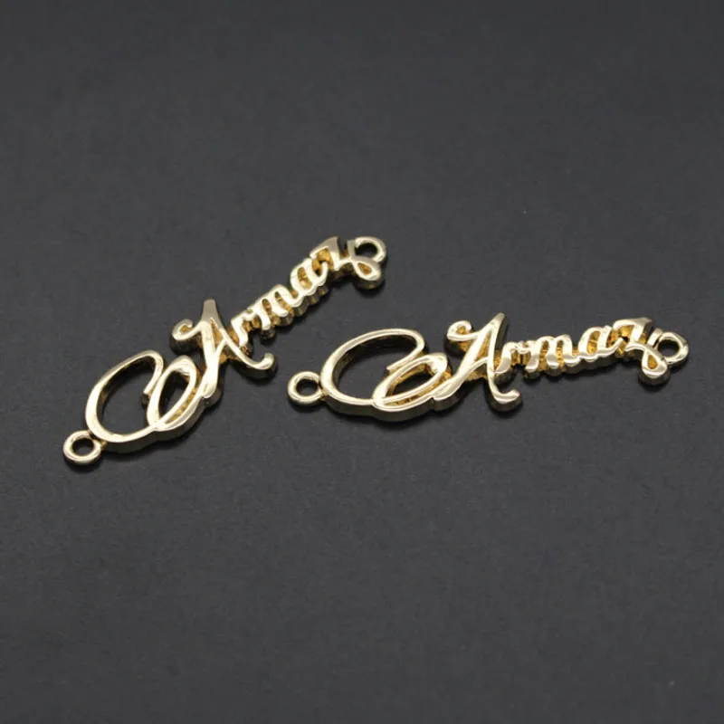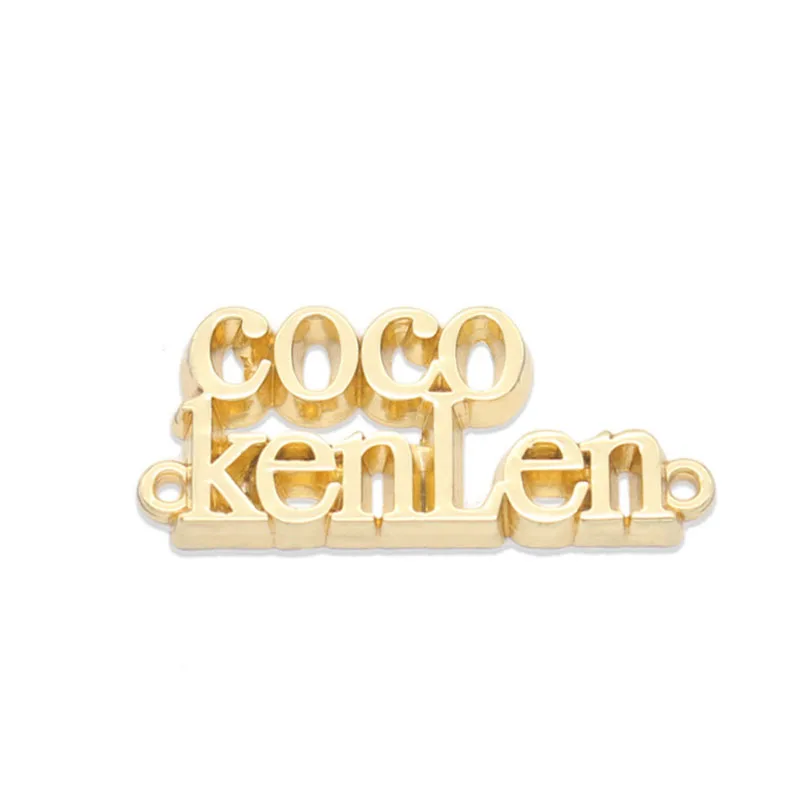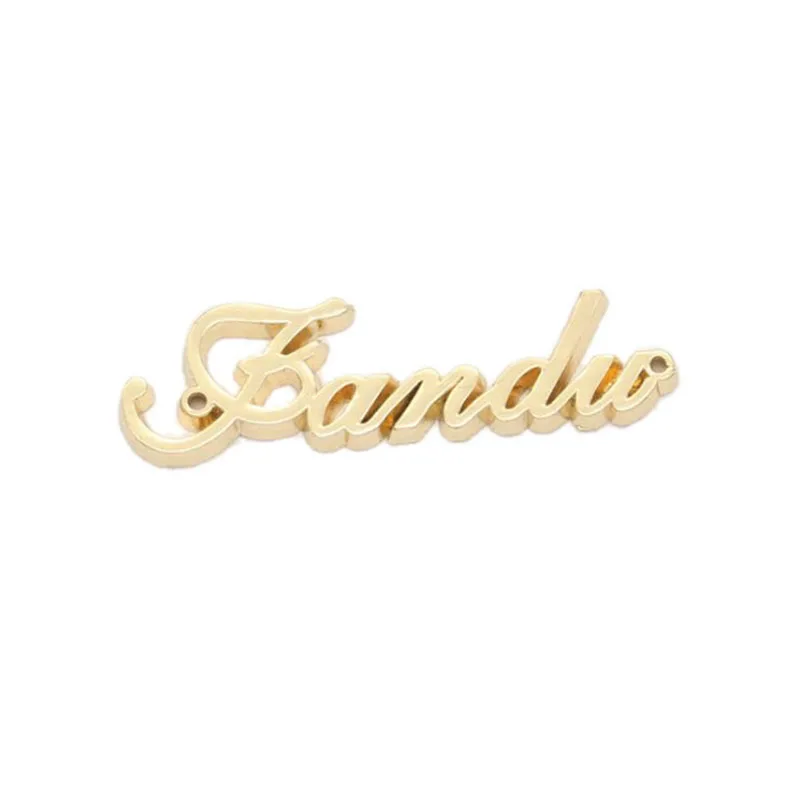 Профессиональная Изготовленная на заказ овальная выгравированный логотип бренда, металлические этикетки для купальных шорт небольшой логотип из металлических букв этикетка шить материал для изготовления сумок,