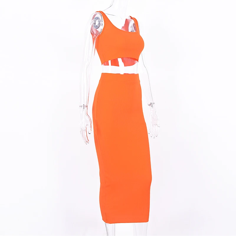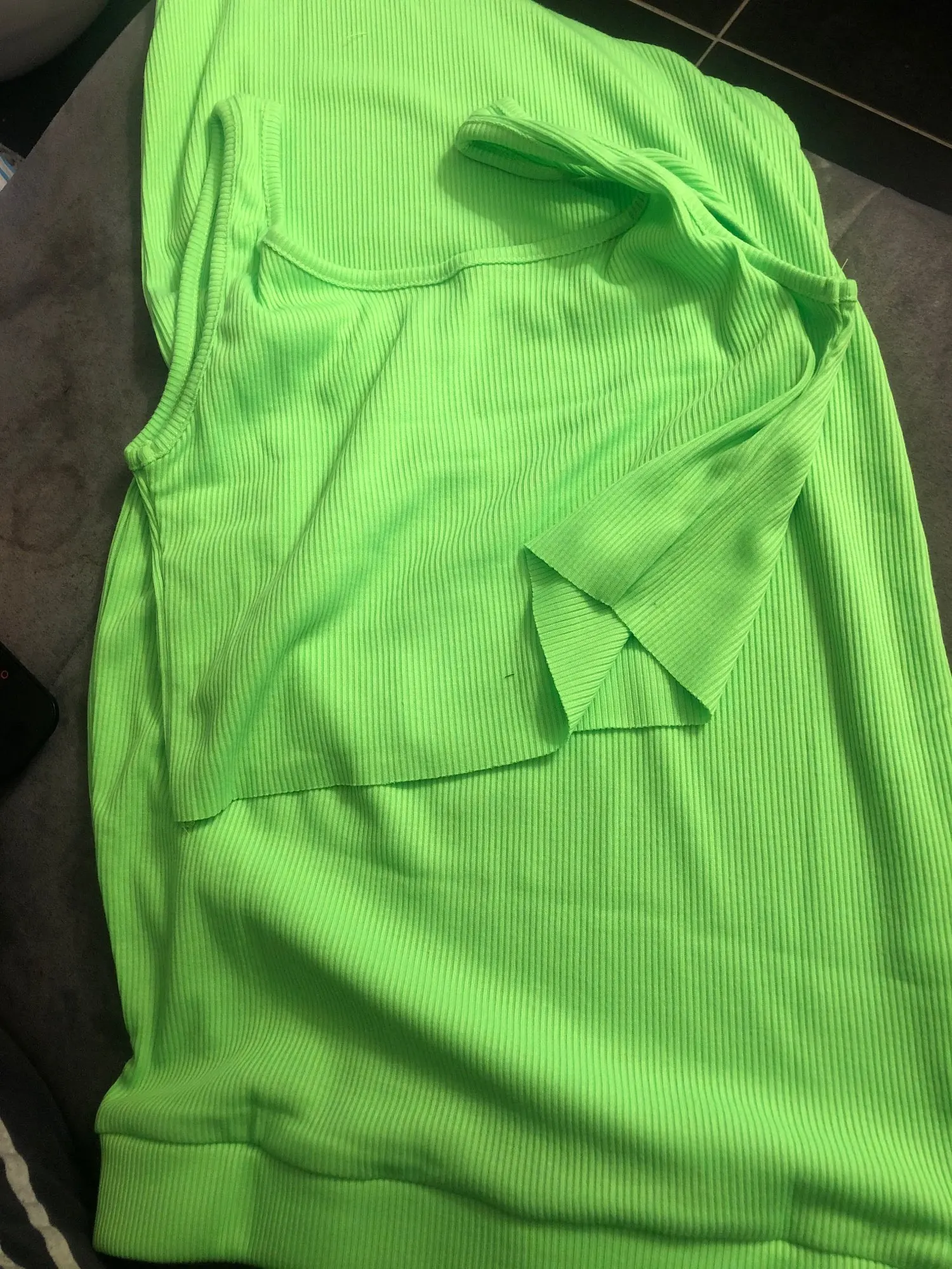 Женженское укороченный топ и юбка Hugcitar Сплошной однотонный неоновый зеленый праздничный на бретельках лямках из 2 предметов, облегающий элегантный уличная одежда, лето 2019