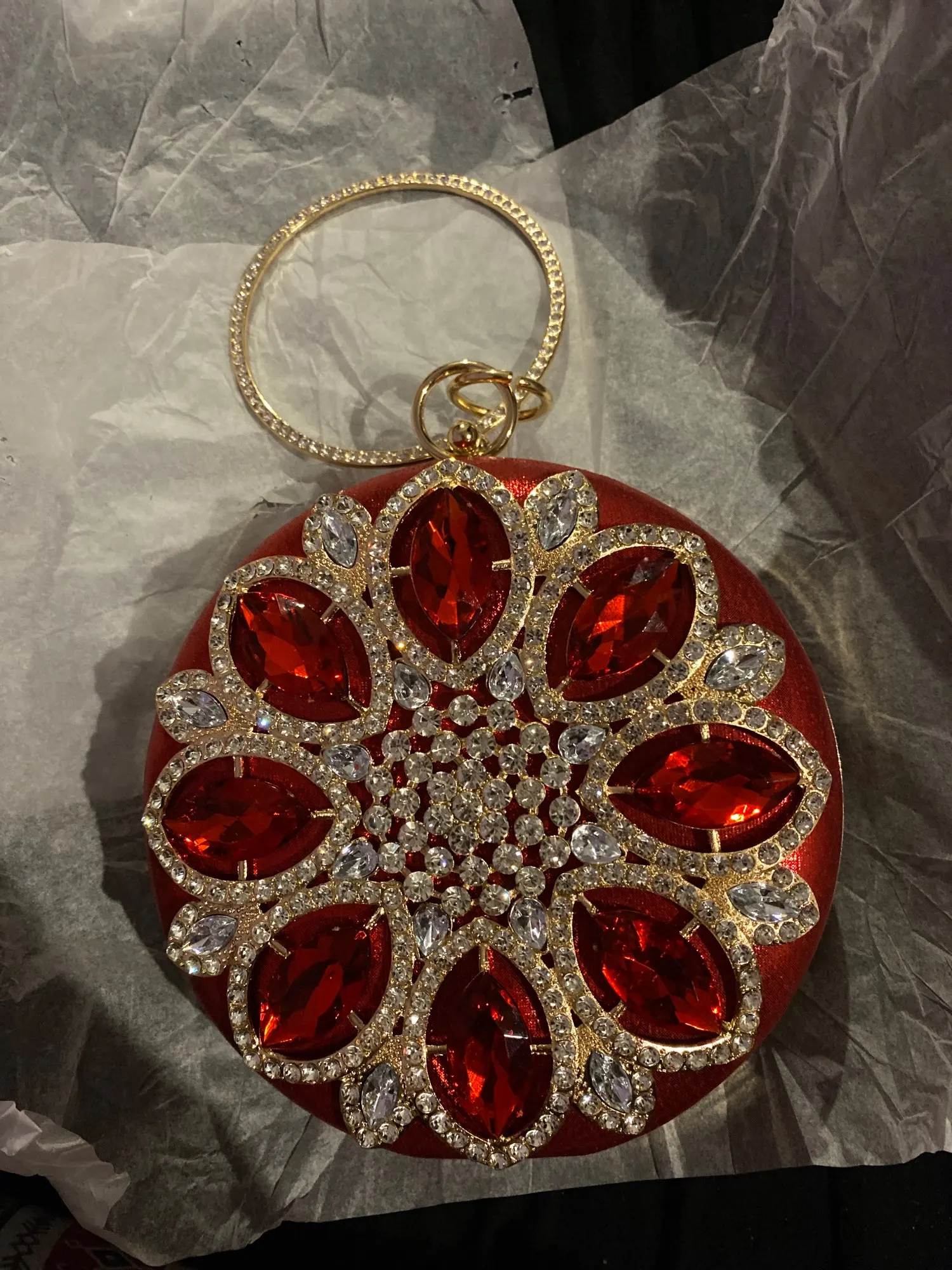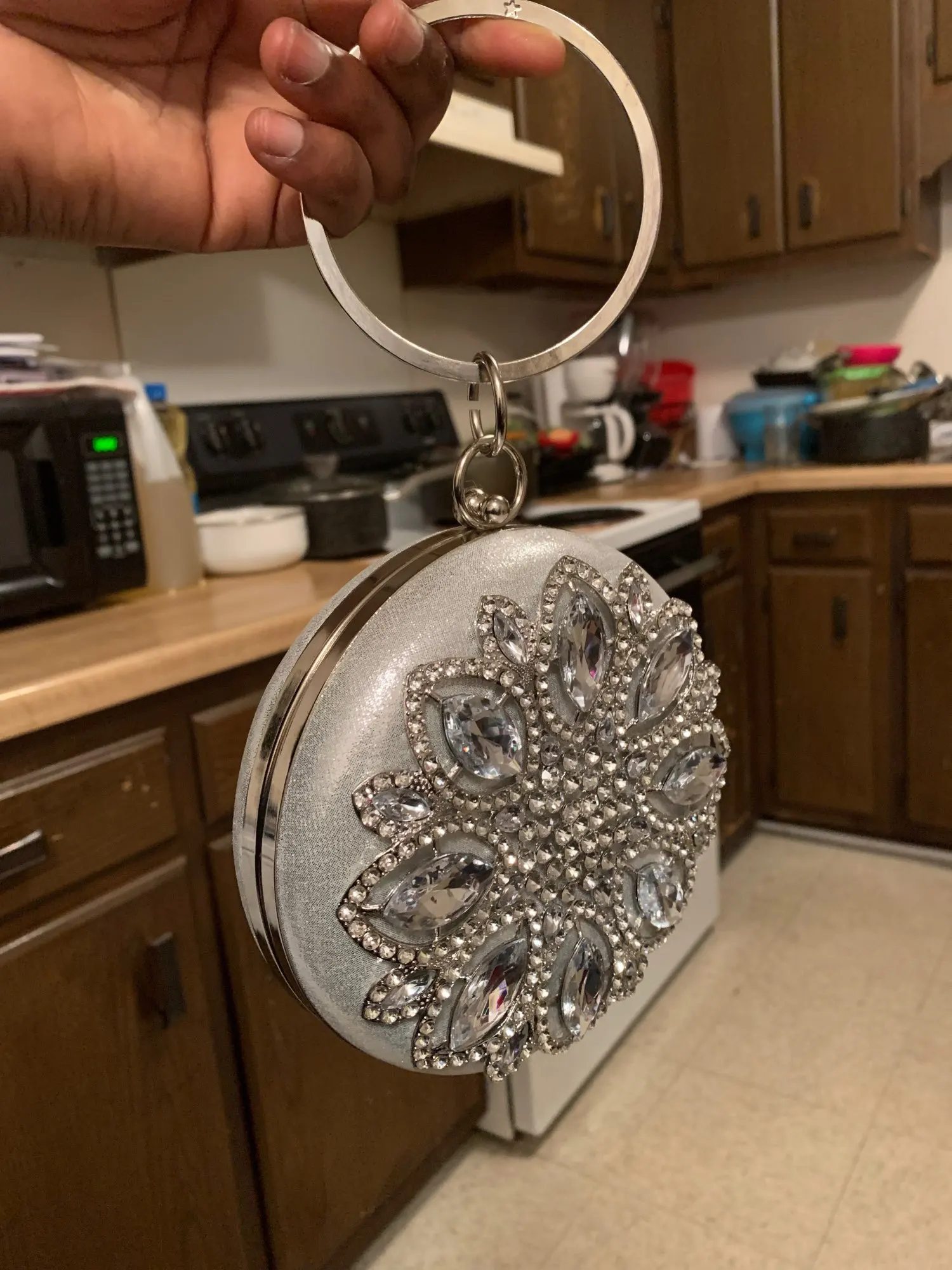Клатч женский, круглая вечерняя сумочка, с кристаллами, на цепочке, ZD1244