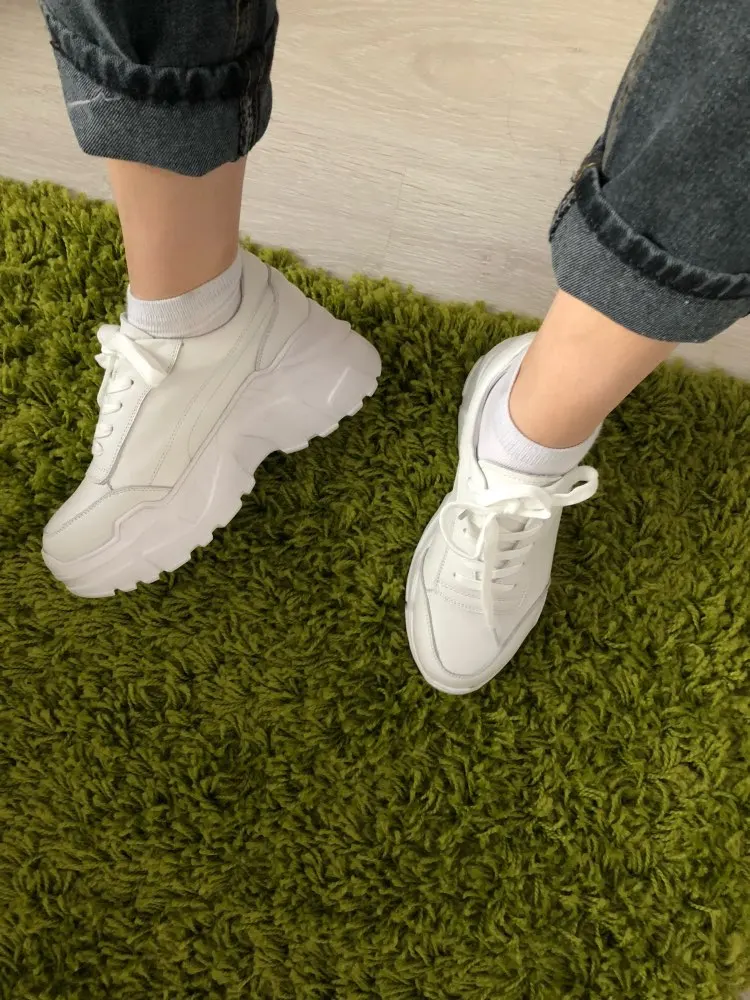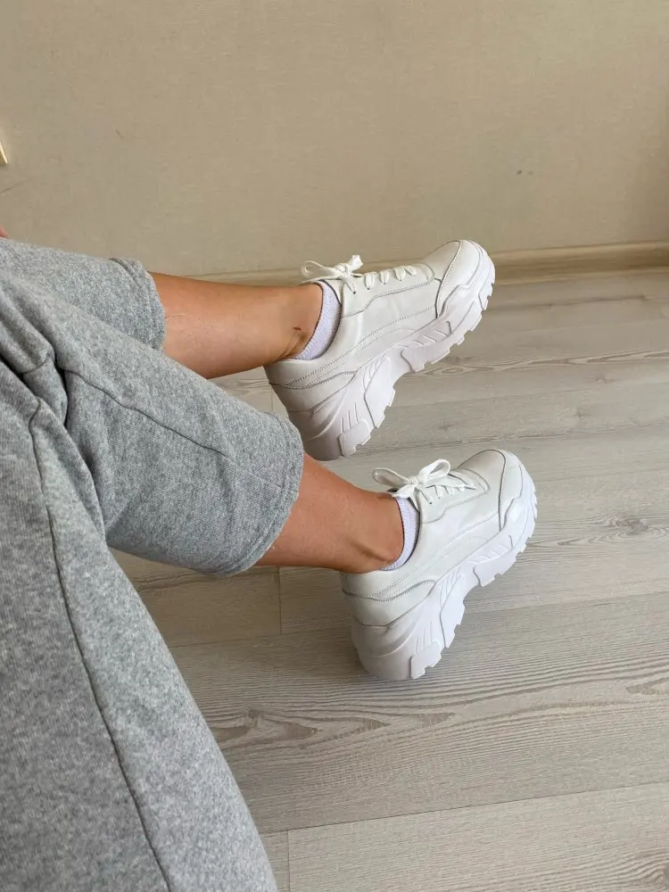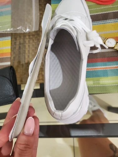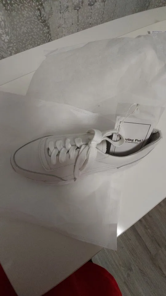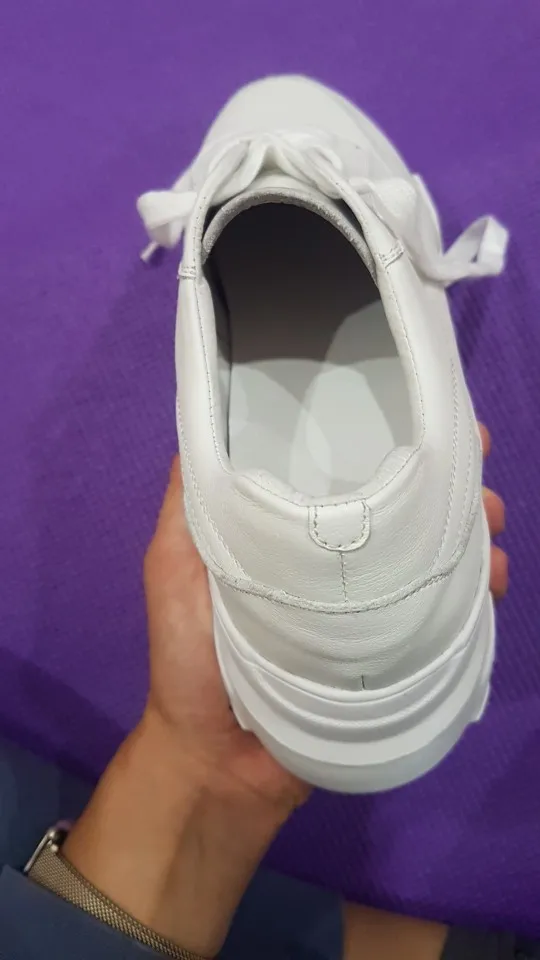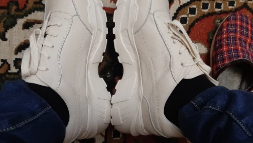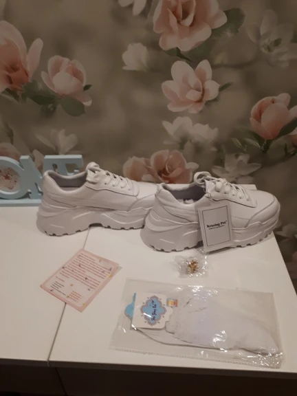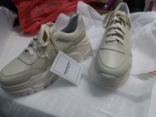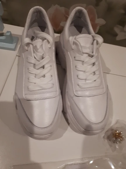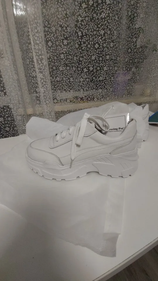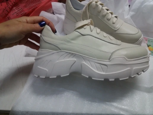 Кроссовки симпатично смотрятся на ноге, но качество точно не стоит 4000₽. После распаковки был сильный резиновый запах, не выветривался две недели. Подошва выполнена не качественно. Если материал - кожа, то самого низкого качества. Стельки как таковой нет, просто тонкий слой «кожи», который начал отслаиваться после первой же примерки. Выбрала размер 9, долго не отправляли заказ, продавец молчал. После моего сообщения ответил, что они ещё не изготовлены. У других магазинов сразу оговорено, что некоторые размеры делают по заказу. Выбрала именно этот, т.к. думала, что отправят сразу. В итоге разочаровалась. Доставка почти месяц до МО. Колодка совершенно не удобная, ноги устают, как будто не в кроссовках ходишь. Ощущение, что эту обувь изготавливают без учета особенностей стопы. Покупкой разочарована. Со стороны сказали, что выглядят, как пластиковые, а не кожаные.