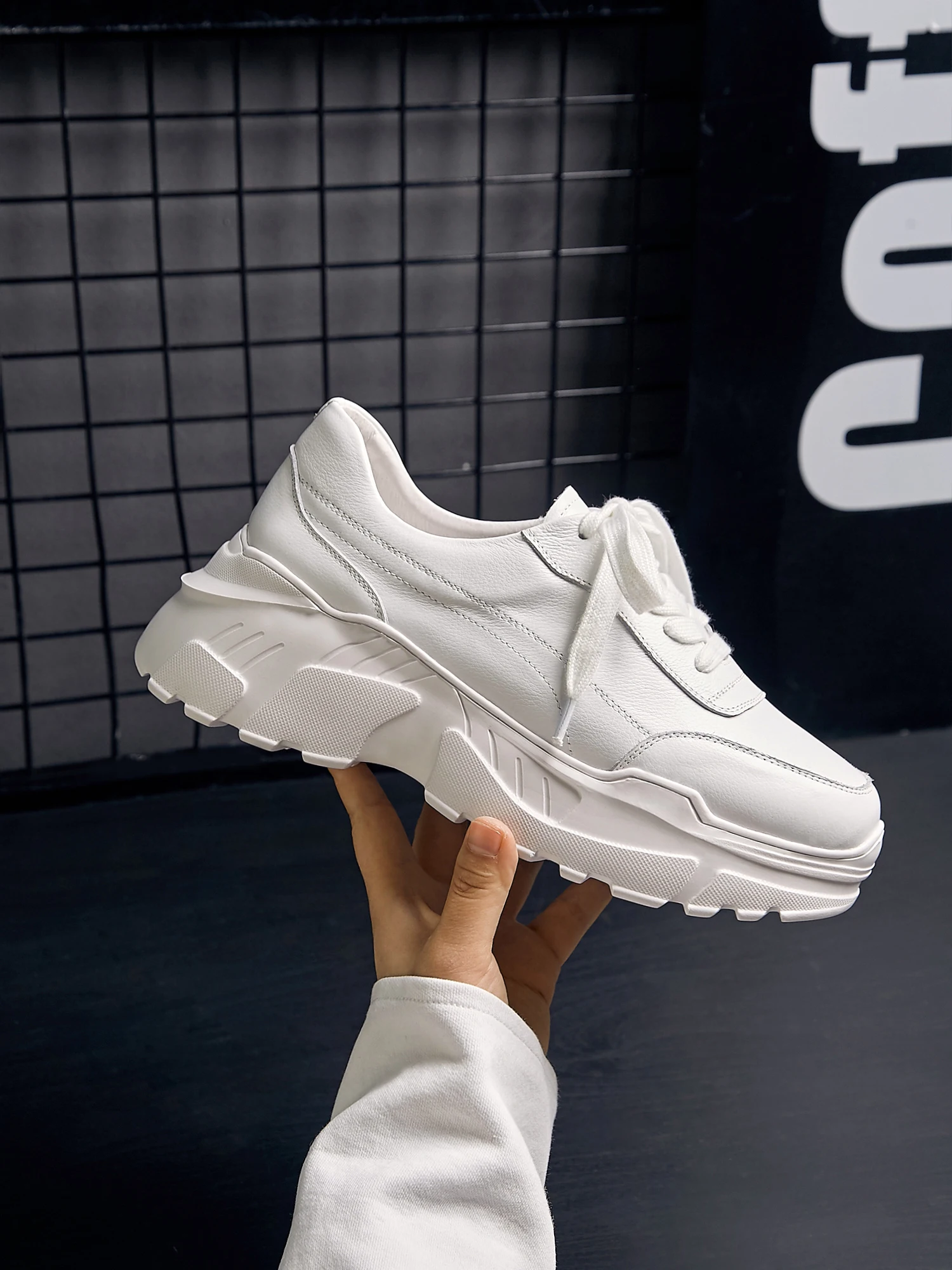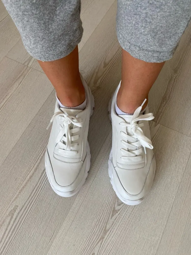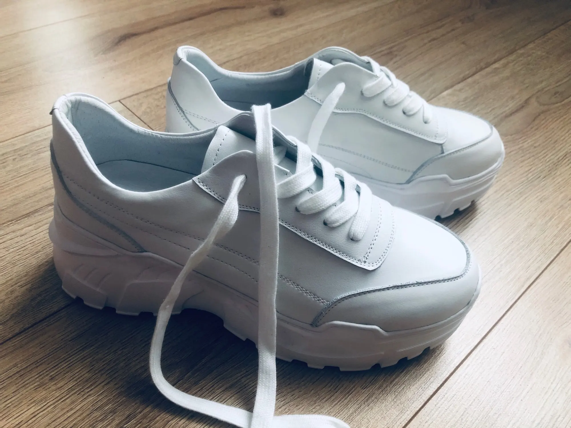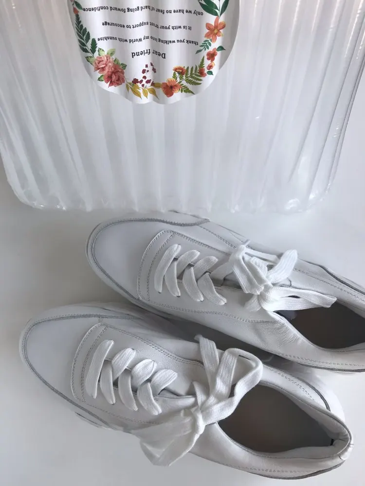 Кроссовки симпатично смотрятся на ноге, но качество точно не стоит 4000₽. После распаковки был сильный резиновый запах, не выветривался две недели. Подошва выполнена не качественно. Если материал - кожа, то самого низкого качества. Стельки как таковой нет, просто тонкий слой «кожи», который начал отслаиваться после первой же примерки. Выбрала размер 9, долго не отправляли заказ, продавец молчал. После моего сообщения ответил, что они ещё не изготовлены. У других магазинов сразу оговорено, что некоторые размеры делают по заказу. Выбрала именно этот, т.к. думала, что отправят сразу. В итоге разочаровалась. Доставка почти месяц до МО. Колодка совершенно не удобная, ноги устают, как будто не в кроссовках ходишь. Ощущение, что эту обувь изготавливают без учета особенностей стопы. Покупкой разочарована. Со стороны сказали, что выглядят, как пластиковые, а не кожаные.