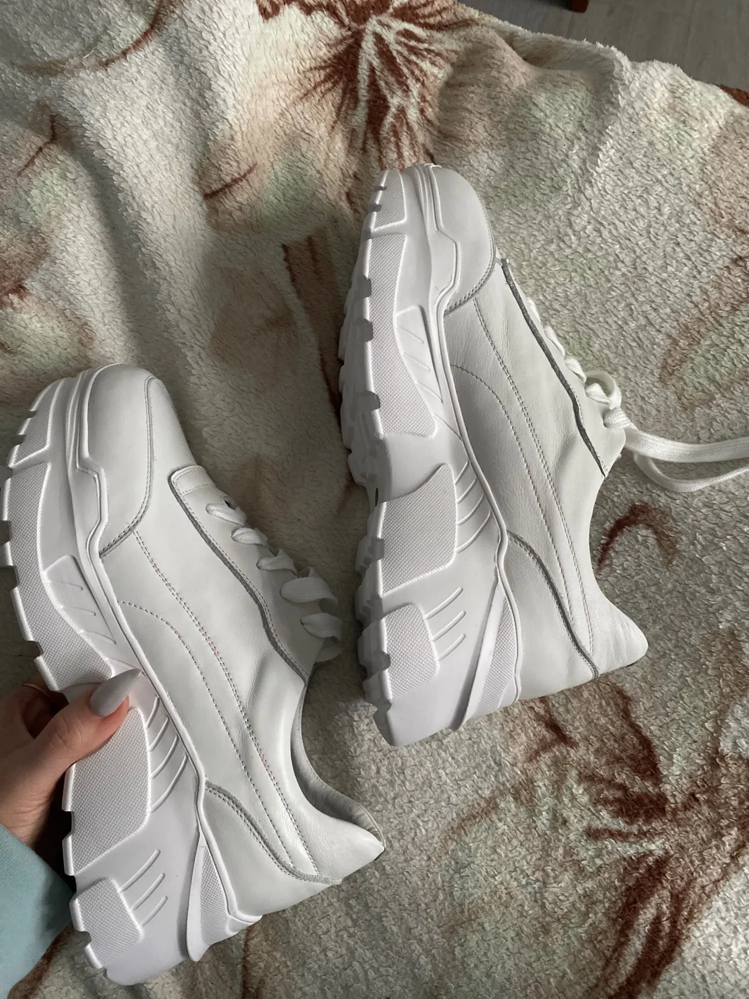 Очень крутые массивные кроссовки, давно искала их! Они из натуральной кожи, качество просто пушка! Продавец положил приятные подарочки. Сочетаются с чем угодно, просто восторг! Заказала размер 8,5 на стопу 24 см, российский 37-38 размер, подошли идеально. Покупкой довольна. Все вопросы по поводу товара можете задать мне в инст @_pro_style_ , там вы найдёте фото, видео и подробный отзыв и много крутых обзоров на классные вещи