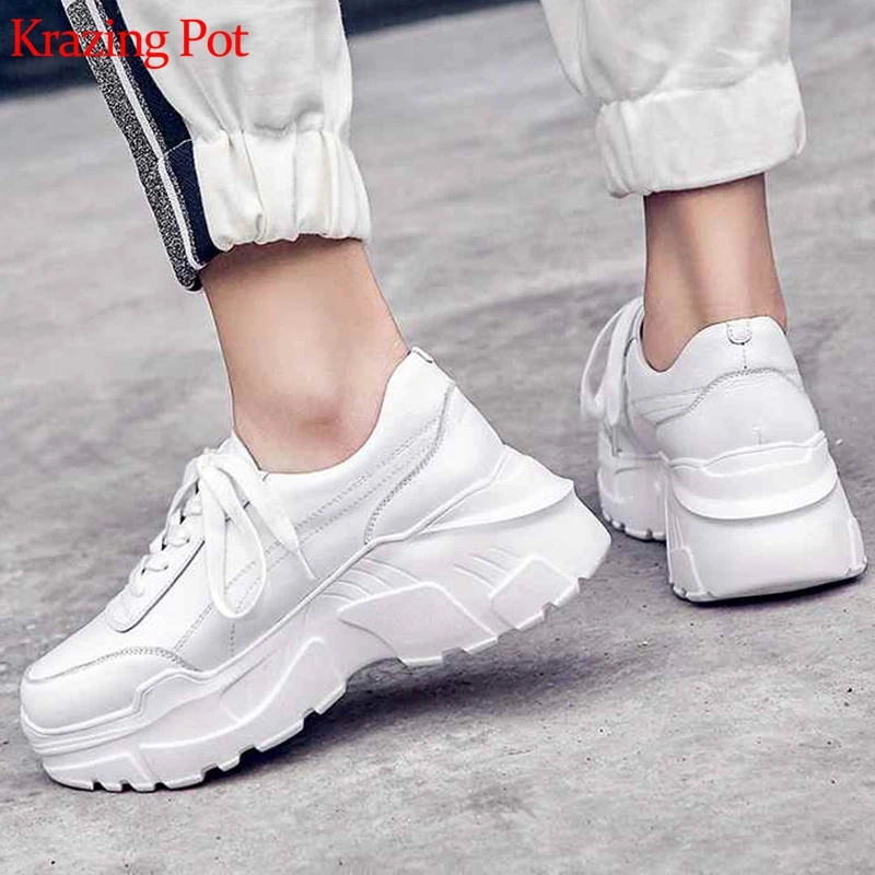 Кроссовки Krazing pot на платформе, с круглым носком, на шнуровке, Вулканизированная подошва, белые, 2022