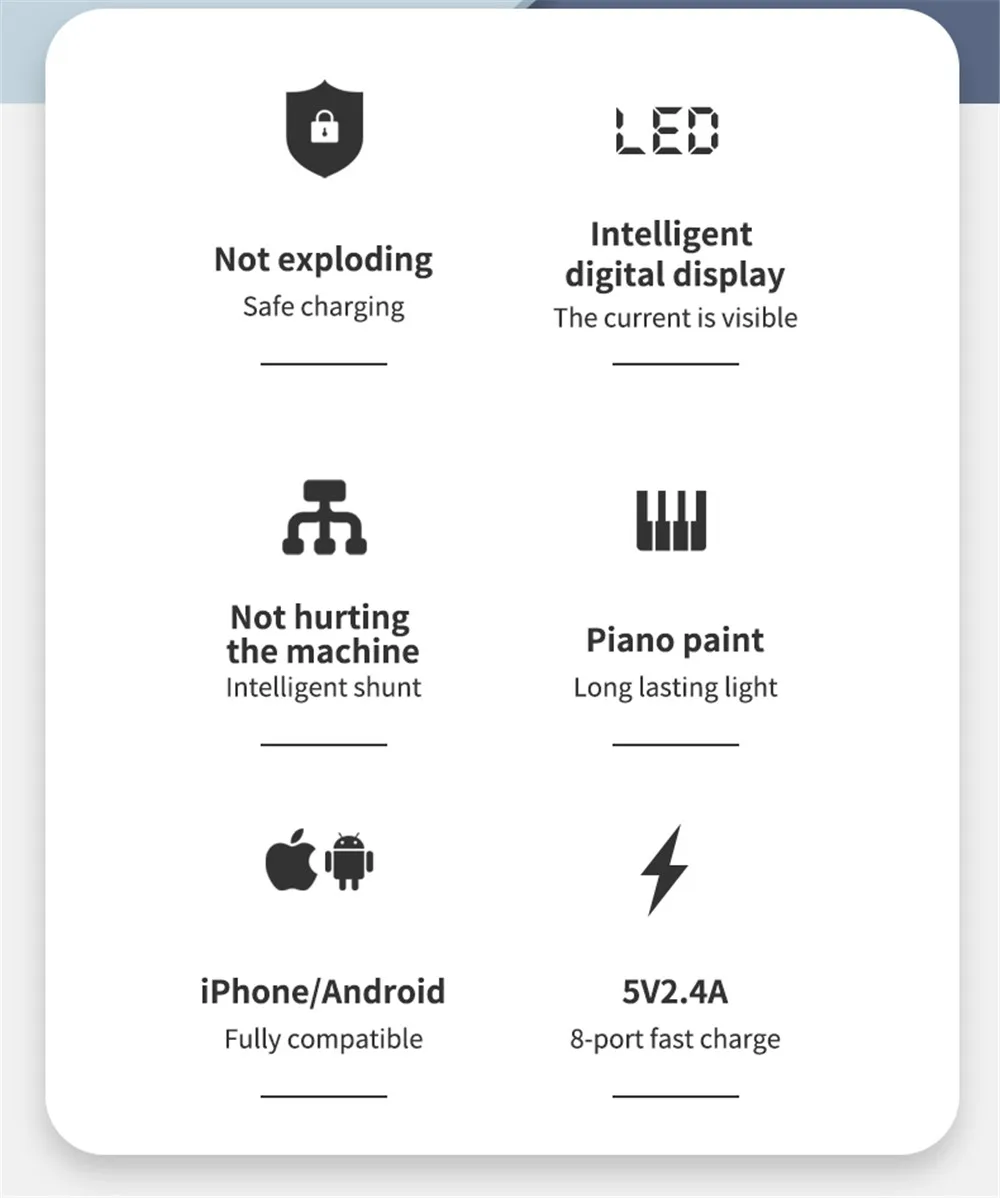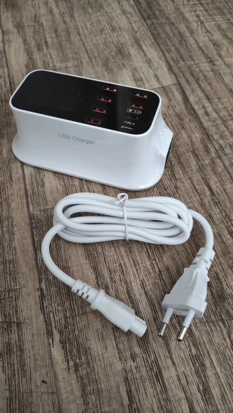 очень удобный гаджет избавил меня от головной боли, теперь можно заряжать все что заряжается в одном месте. качественный, в фирменной коробке, все порты рабочие, ножки противоскользящие, пластик качественный. продавцу спасибо, доставка быстрая.