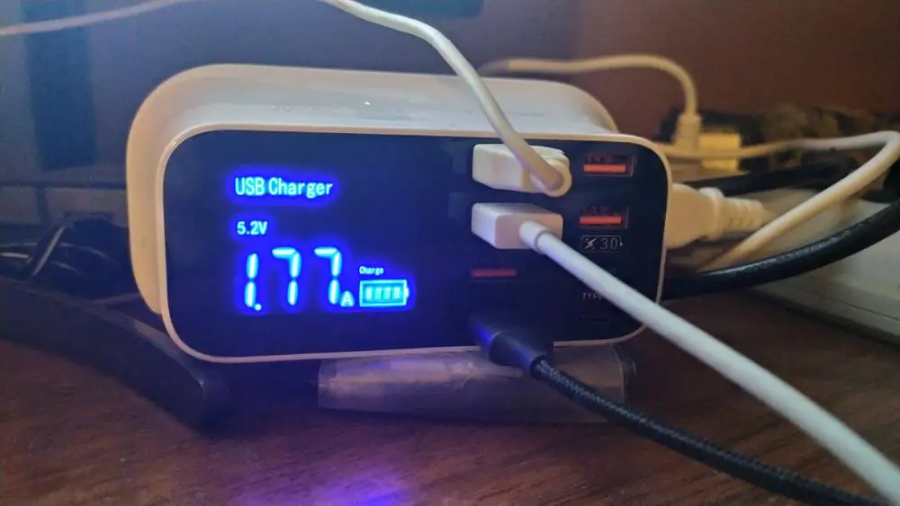 До СПб ехала чуть больше двух недель. Зарядка отличная для тех у кого много гаджетов. Гнездо типа С выдаёт 5В 2,9А , быстрая зарядка 9В 1,7А , но не на всех устройствах, даже если они поддерживают быструю зарядку.