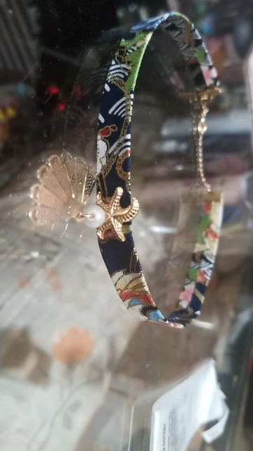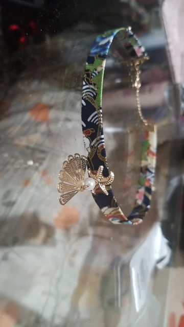 Чокер симпатичный, сделан из не тянущейся ткани, на месте крепления подвески ткань слегка разъезжается, но в общем и целом смотрится интересно.