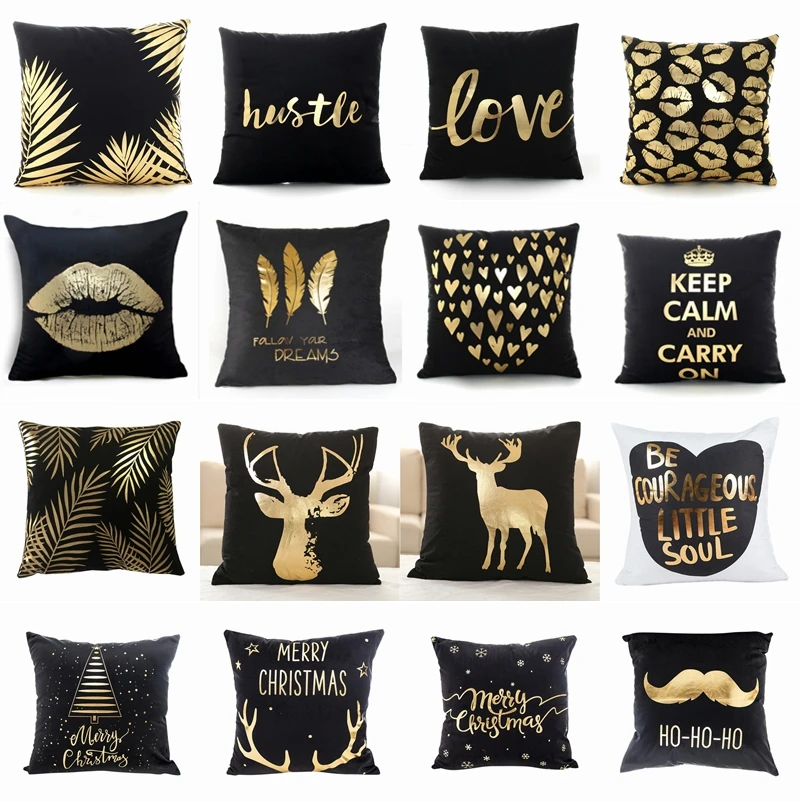 Декоративные подушки, черные, бронзовые, с принтом золотой фольги Наволочка украшения для дома, диванные подушки 17*17 дюймов, Рождество