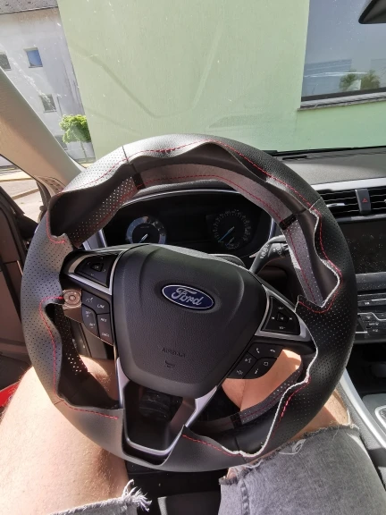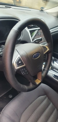 На Ford Fusion USA 2015 , резиновый руль (толще чем кожаный) недостаточно ширины обмотки, что б хорошо обтянуть. Сам материал хороший. Если сравнивать с накладками , то результат лучше. Но верхняя часть руля до конца не стягивается, остаётся примерно 1 см после затяжки. В комплекте нет крючка для затяжки, но даже с крючком результат на 80% от ожидаемого. На данный руль обмотка не подошла, скорее всего буду снимать и отдавать на обтяжку в мастерскую с другой обмоткой.