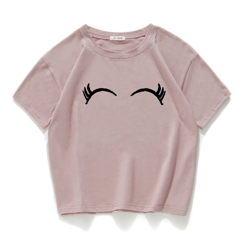 Футболка женская короткая из хлопка, винтажный смешной кроп-топ свободного покроя, крутая рубашка в стиле харадзюк, с принтом ресниц, лето