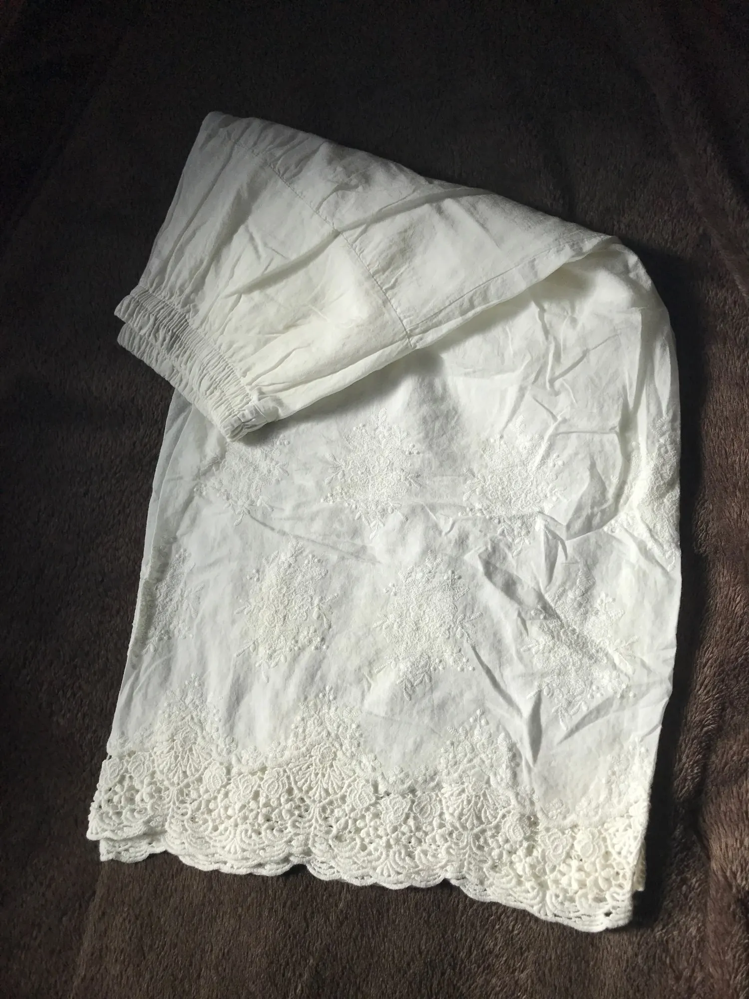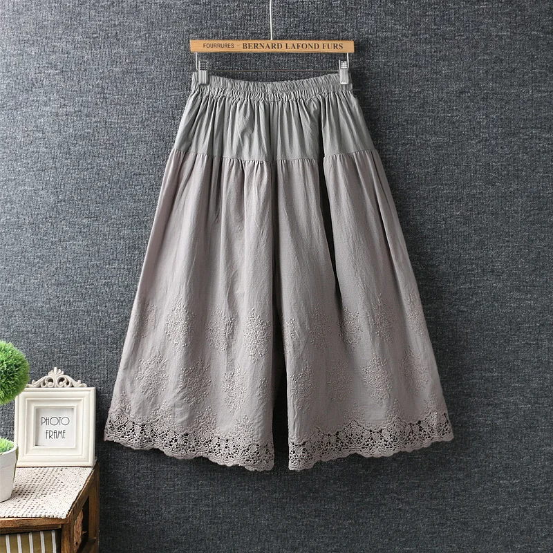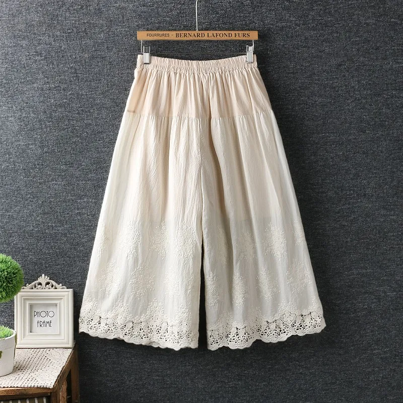 Летние винтажные хлопковые широкие брюки с цветочной вышивкой, женские милые Лолиты