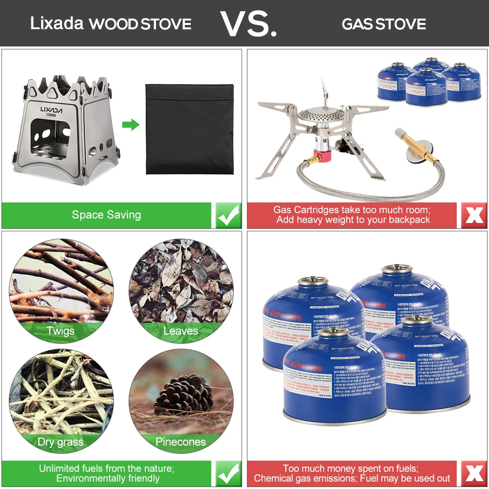 Портативная титановая дровяная плита Lixada для кемпинга, пикника, кемпинга, пикника