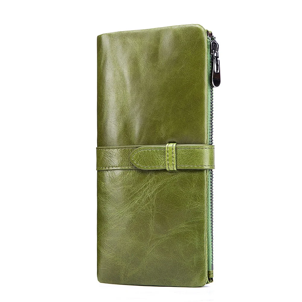 Длинный кошелек из натуральной воловьей кожи для женщин, Дамский держатель для карт, карман для сотового телефона с монетницей, женский бумажник на молнии и застежке