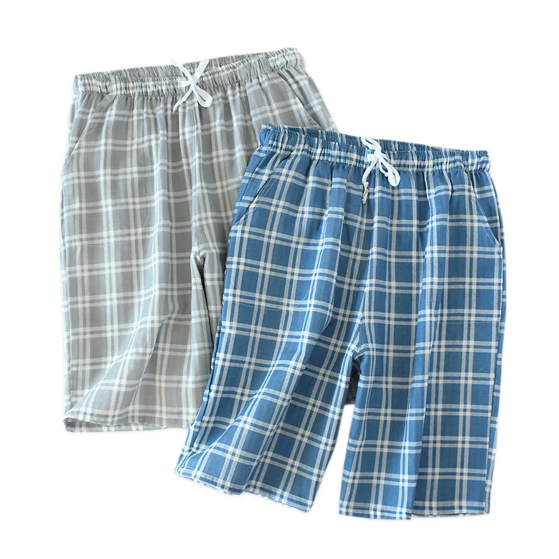 Летние клетчатые Короткие штаны для сна, мужские Пижамные штаны, Мягкие 100% хлопковые домашние шорты, мужские повседневные пижамные штаны для мужчин