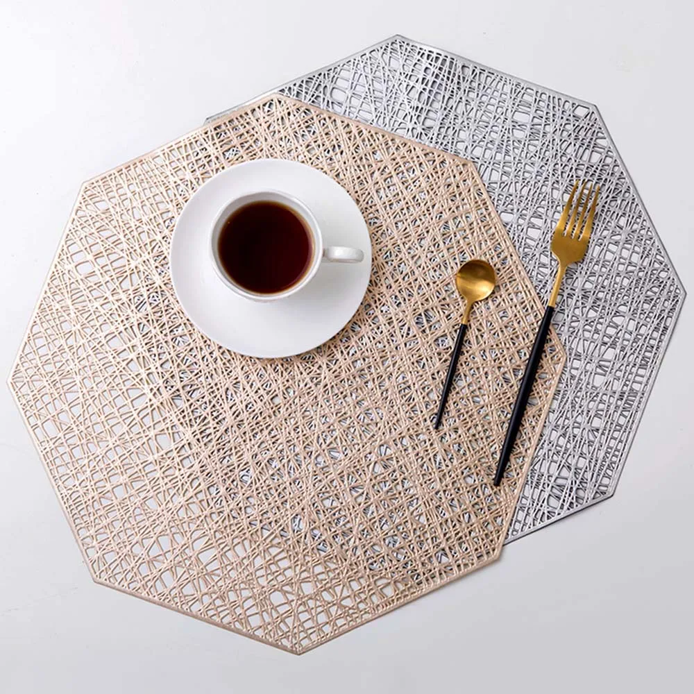Восьмиугольная подставка для напитков из ПВХ, золотистая, серебрист...