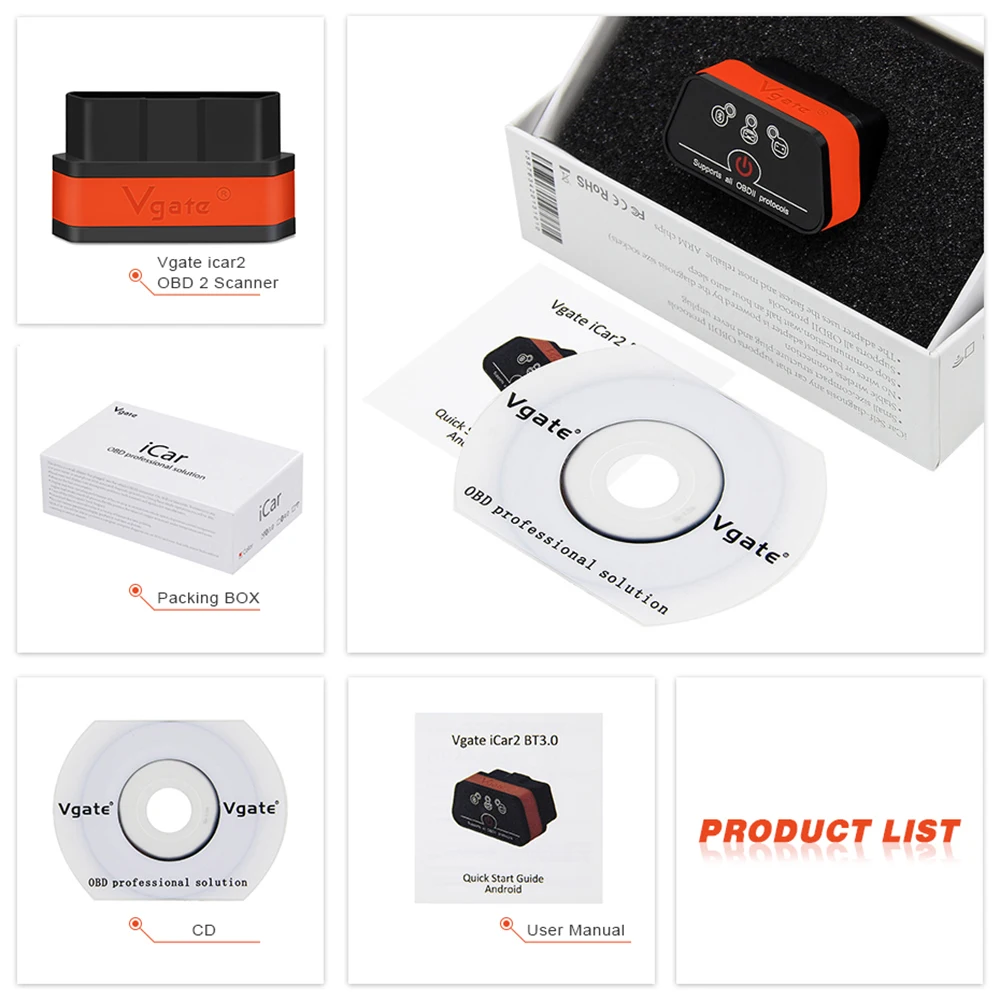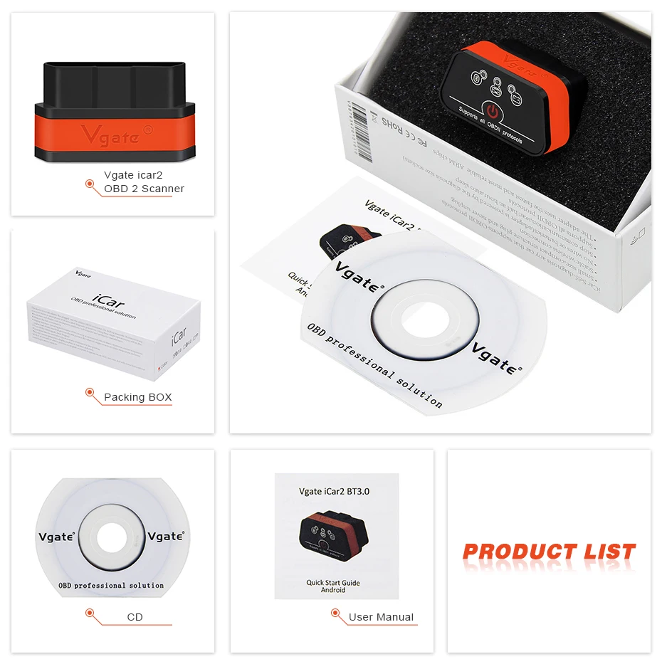 Автомобильный диагностический сканер Vgate iCar2 ELM327 OBD OBD2 Bluetooth Elm 327 v2.1odb2 OBDII считыватель кодов PK elm327 V1.5 PIC18F25K80