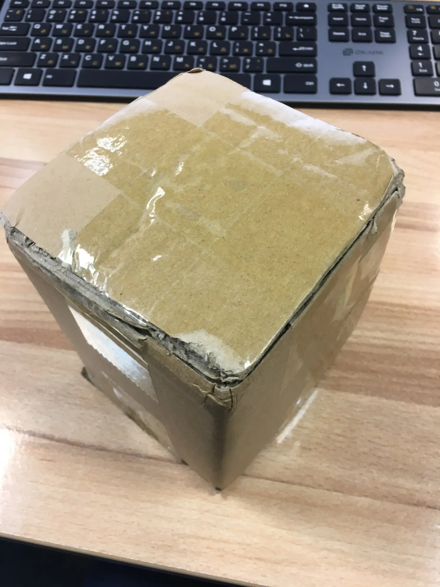 Хорошо упакованный, но не такой красивый, как на фото. Не тот же мраморный эффект, повреждение