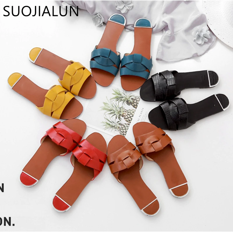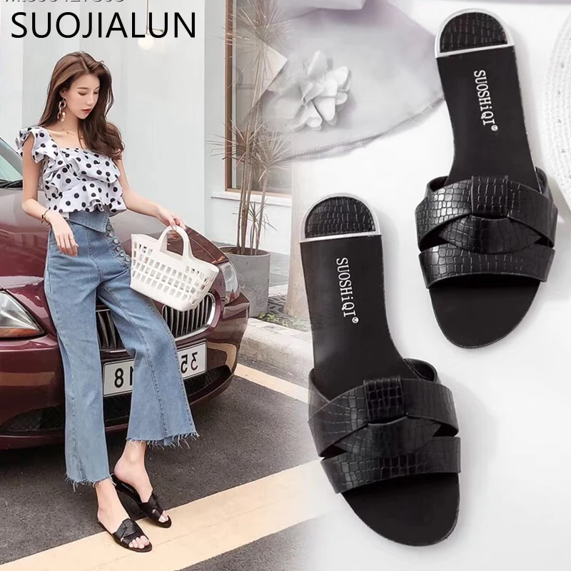 Женские пляжные шлепанцы SUOJIALUN, повседневные шлепанцы на плоской подошве, 2021