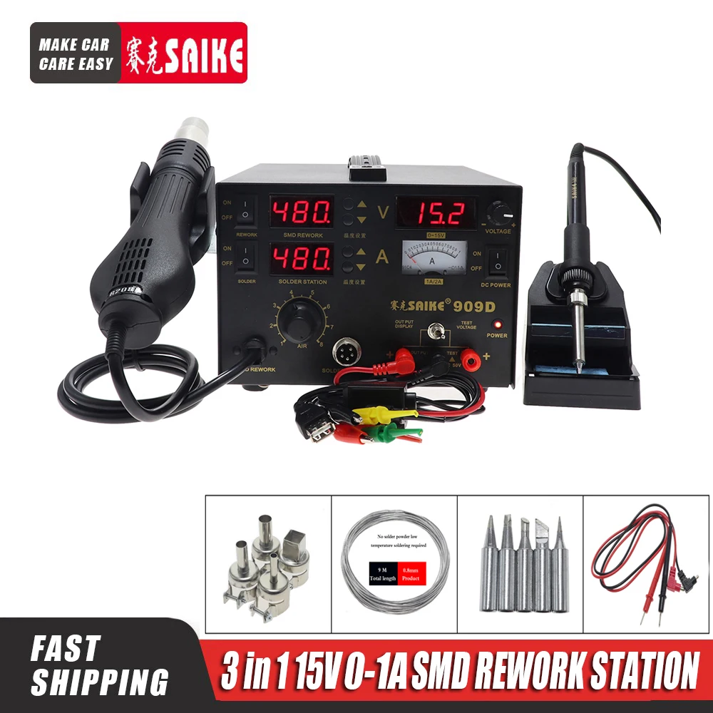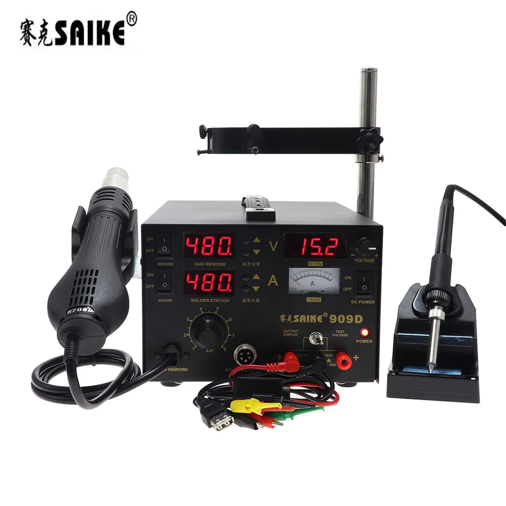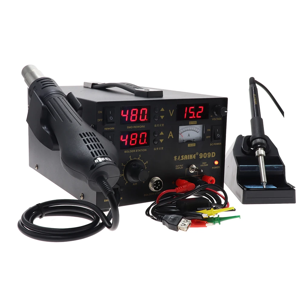 Новый Saike 909D горячего воздуха пистолет паяльная станция с регулируется питания «Три в одном» Многофункциональный BGA паяльная станция 15V 1A