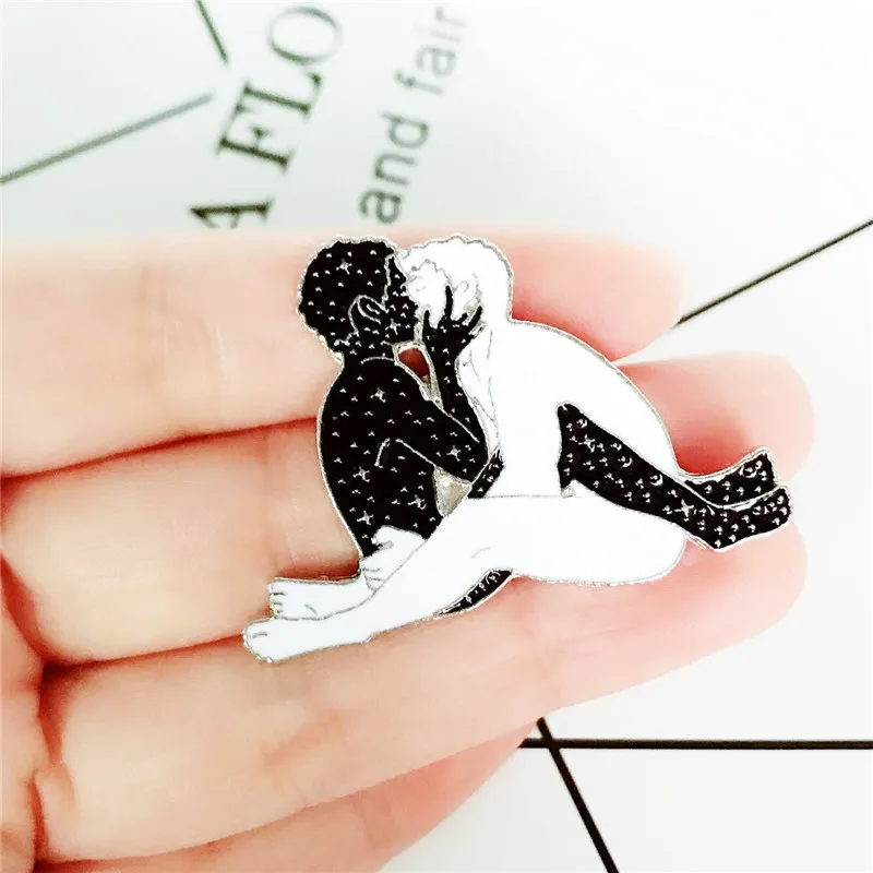 Wonder Man and Man целующиеся булавки черно-белые объятия страстные мужчины гей пары броши значки супергерой ювелирные изделия