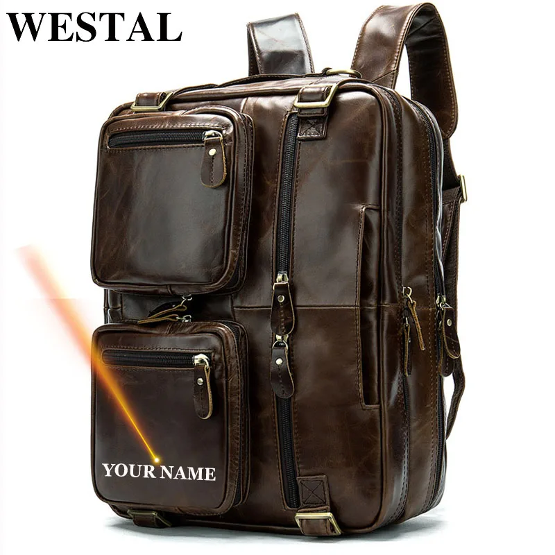 Рюкзак мужской из натуральной кожи WESTAL, большой дорожный рюкзак для ноутбука 43, 100%