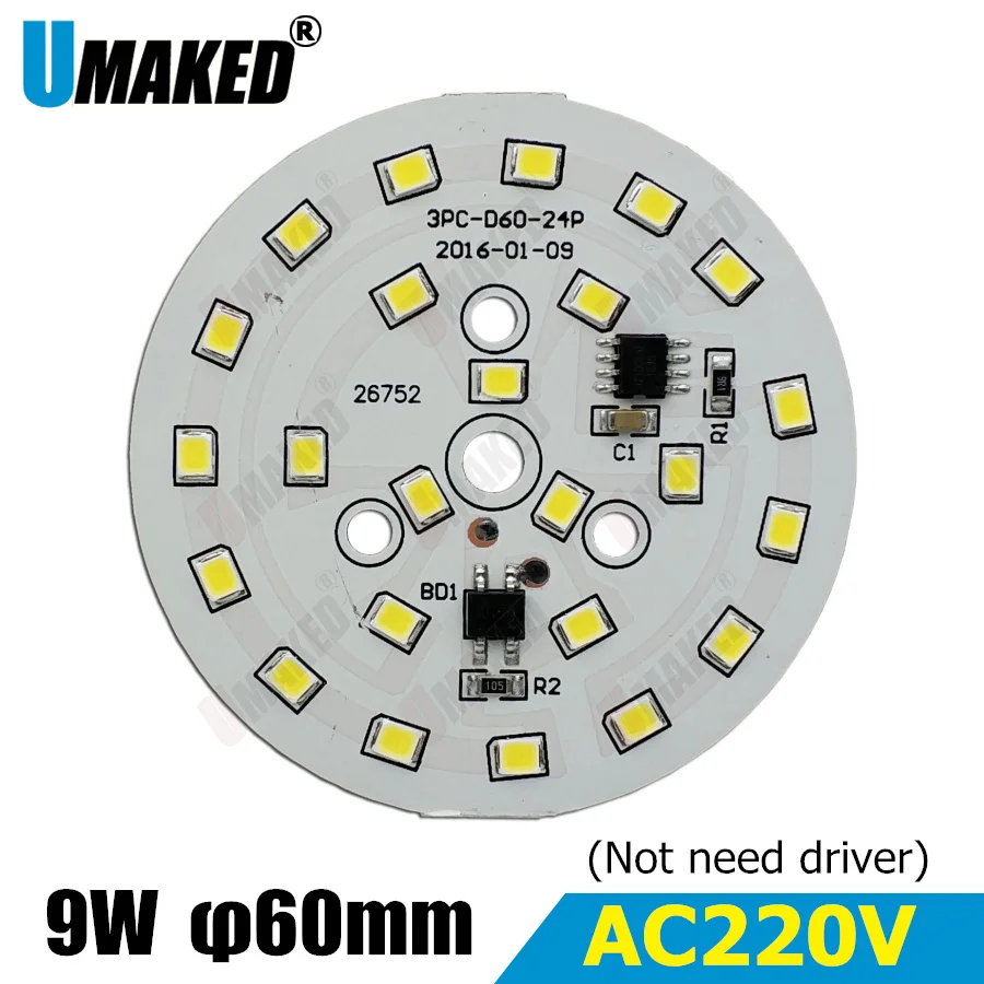 Светодиодная плата направленсветильник smd2835, 9 вт, 60 мм, переменный ток 220 в, встроенный IC-драйвер, 18 вт, 15 вт, 12 вт, 9 вт, 7 вт, 5 вт, 3 вт для нижсветильник света сделай сам