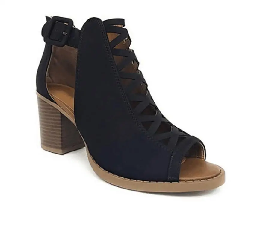 SLHJC, летние короткие ботинки на толстом блочном каблуке, с открыт...