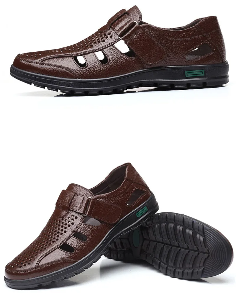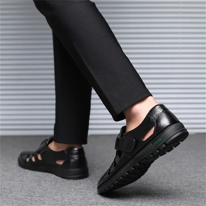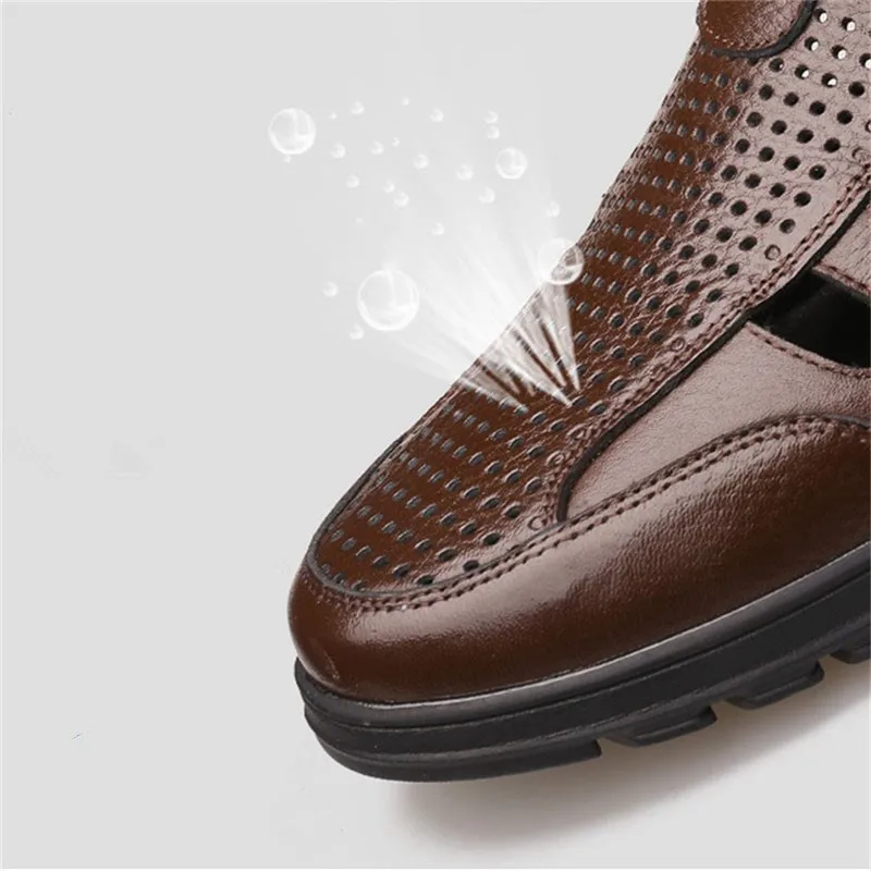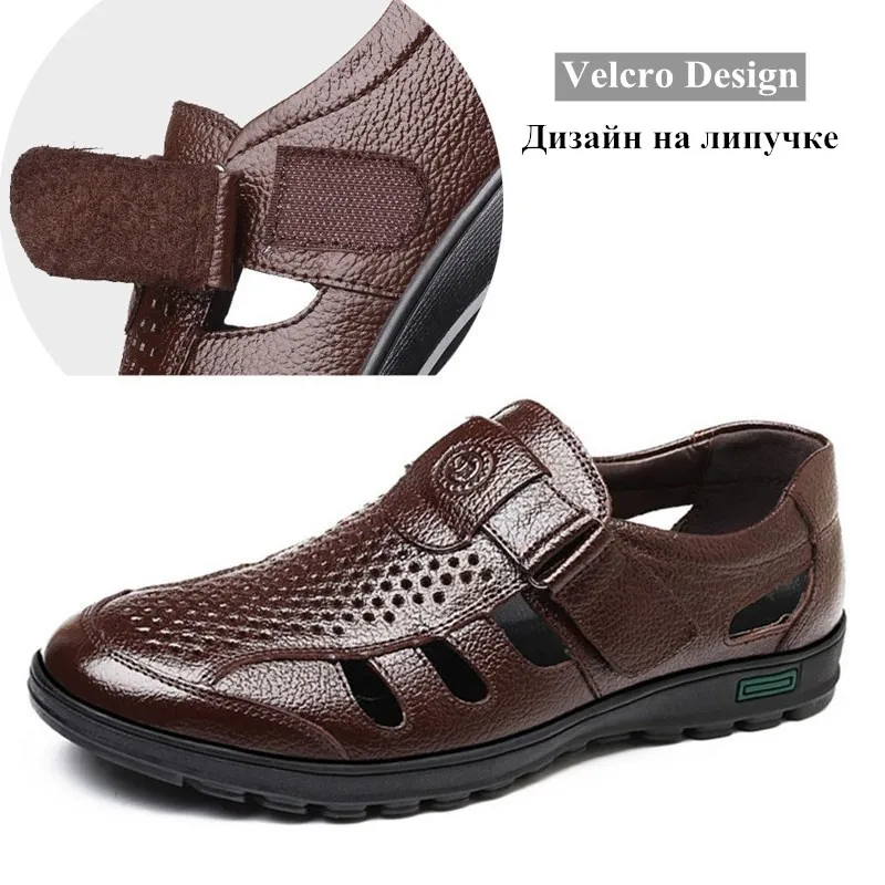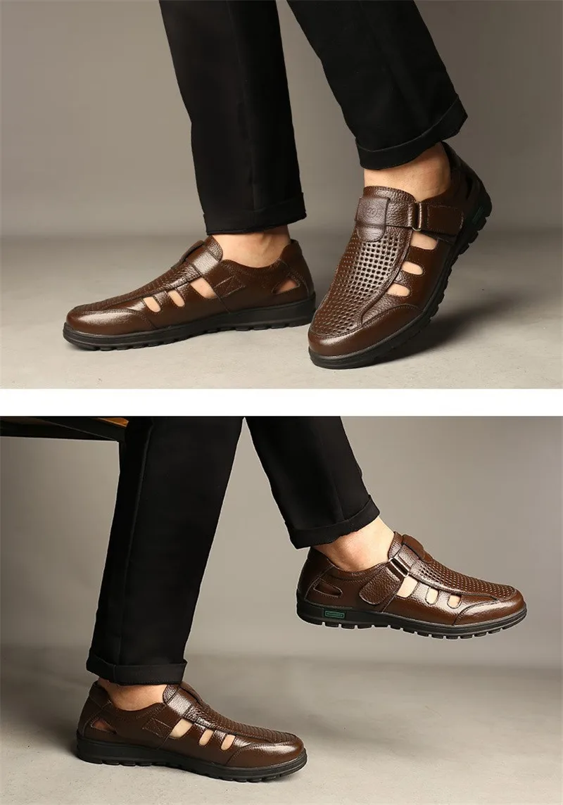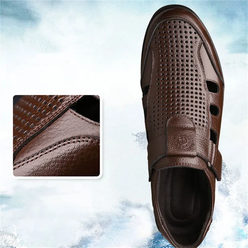 Мужская повседневная обувь обувь мужская летняя Сандалии мужские из натуральной кожи, Перфорированные дышащие, Повседневная пляжная обувь, для отдыха на открытом воздухе, рыбака, летние туфли, большие размеры 48