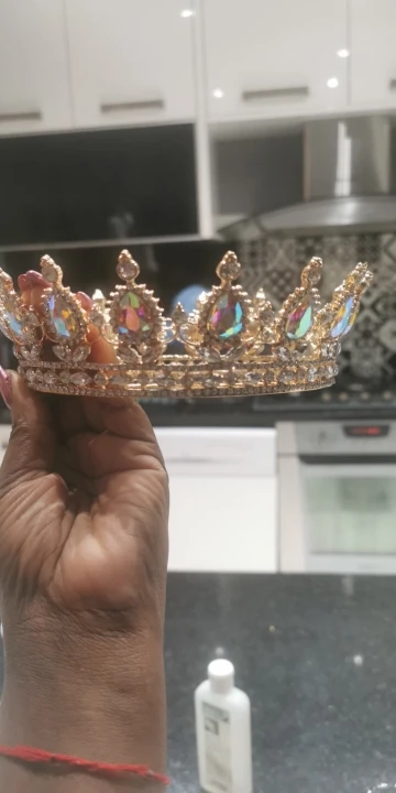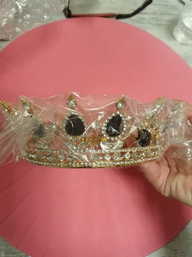 Ну что я могу сксзать! Заказ пришёл быстро, в этом я довольна.. но, корона чуть маловата, думала будет больше. Колечки к которым цепляются шпильки 2 сломались, остальные 2 пока держутся...но не знаю как долго продержится. А в остальном, корона красивая, кристаллы все наместе.