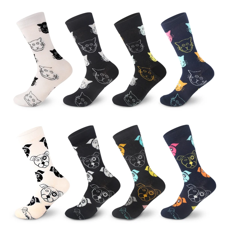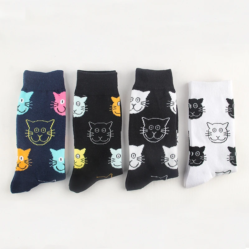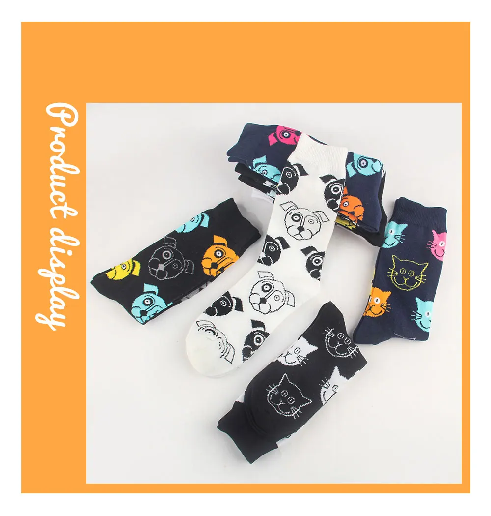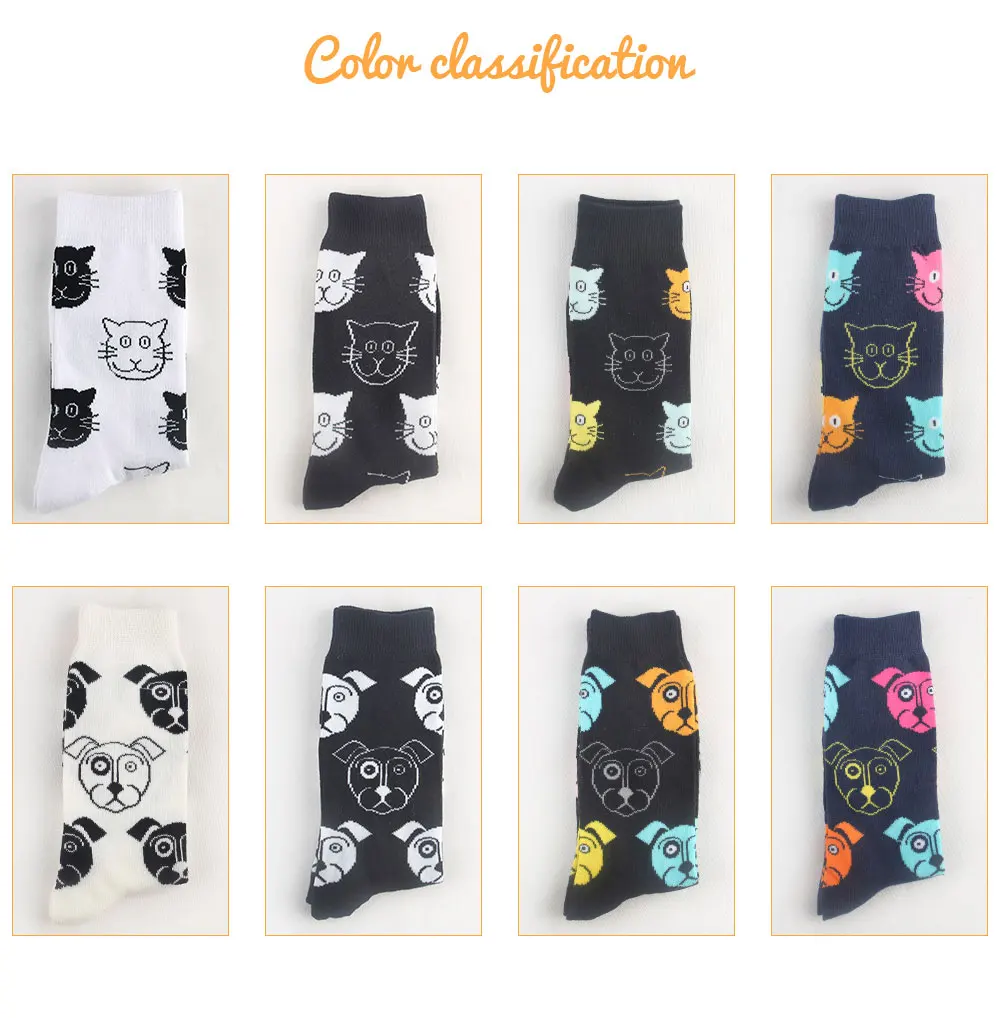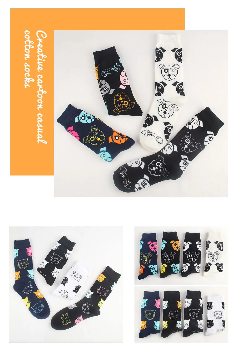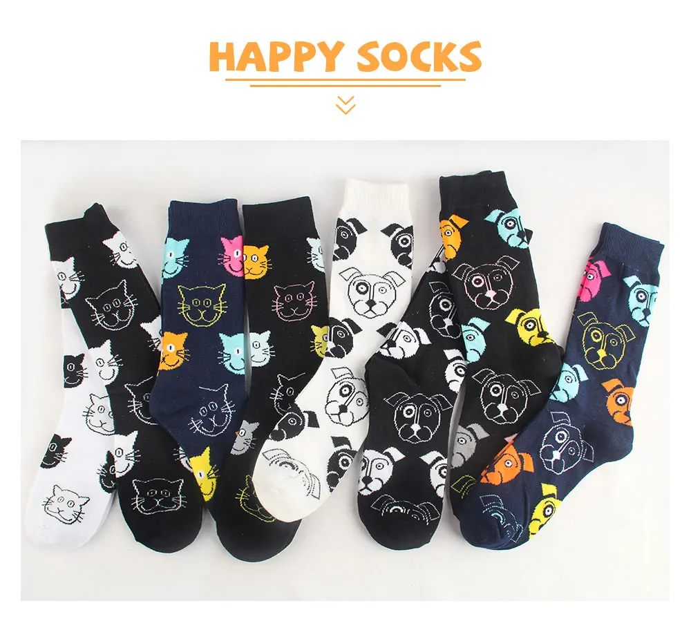 Новое поступление женские забавные носки женские Мультяшные носки из чесаного хлопка с рисунком кошки собаки счастливые носки унисекс Harajuku до щиколотки женские носки