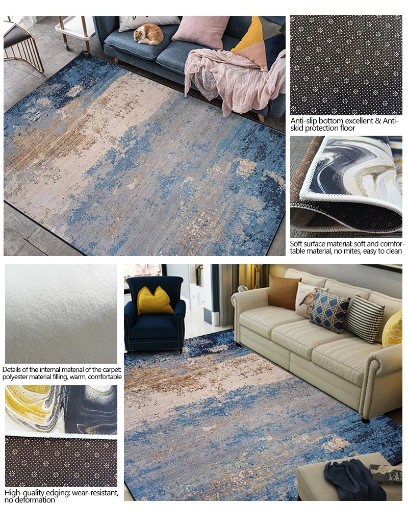 Синие коврики для гостиной с абстрактным рисунком, домашние серые коврики в стиле ретро для детской комнаты, Мягкий Нескользящий Коврик для пола, украшение для спальни