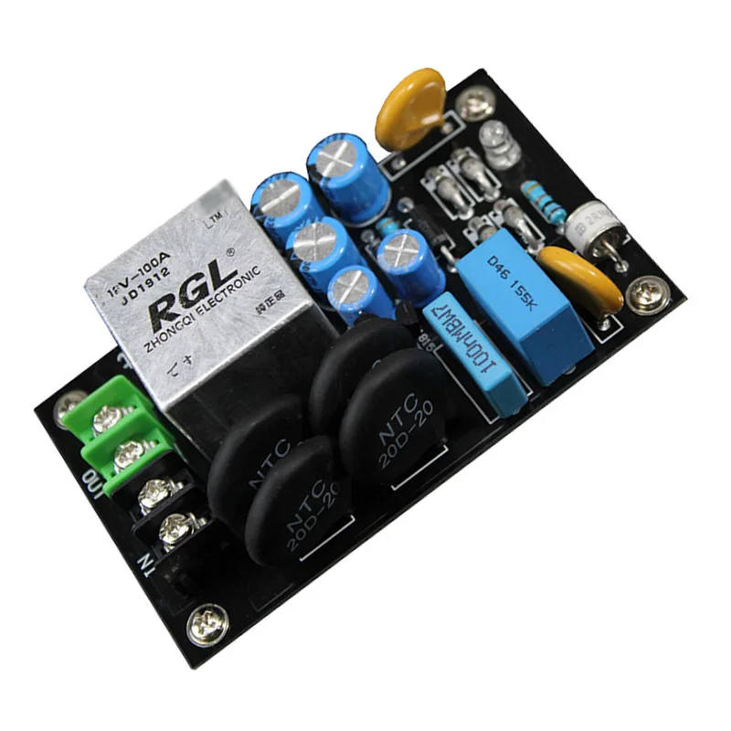 Функция мягкого стартера заключается в том, чтобы уменьшить напряжение в момент запуска, чтобы уменьшить воздействие машины на решетку и продлить срок службы переключателя. Эта плата использует сверхвысокий ток (100A) чисто медное ножное реле и 4 больших термистора NTC 20D-20, который эффективно защищает машину и предотвращает чрезмерный пусковой ток.
