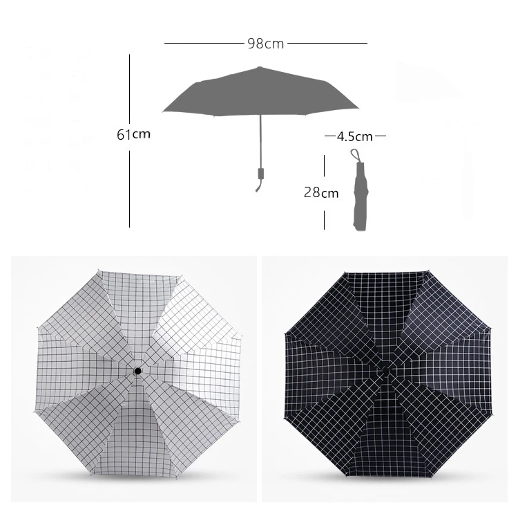 Зонтик в клетку черно-белый женский зонт 3 складной зонт от дождя двойного назначения Корейский мужской зонт с черным покрытием