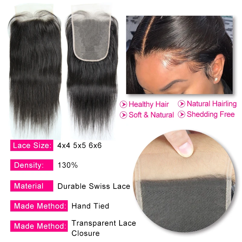 Berrys Модные бразильские девственные волосы прямые 4x4 & 5x5 & 6x6 прозрачное кружевное закрытие
