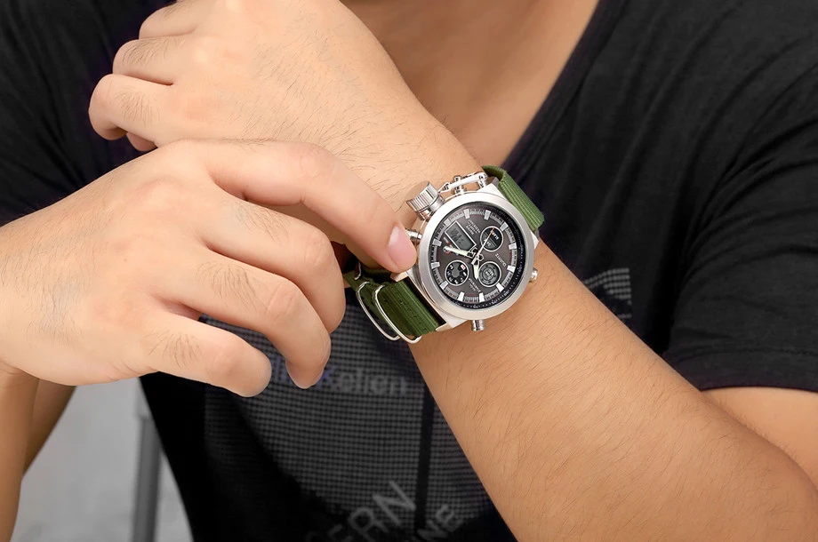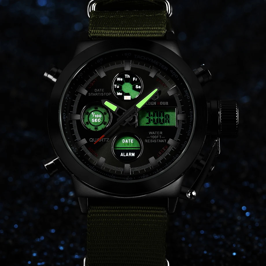 Часы GOLDENHOUR мужские наручные кварцевые, люксовые Брендовые спортивные армейские, с парусиновым покрытием, с автоматическим отображением даты