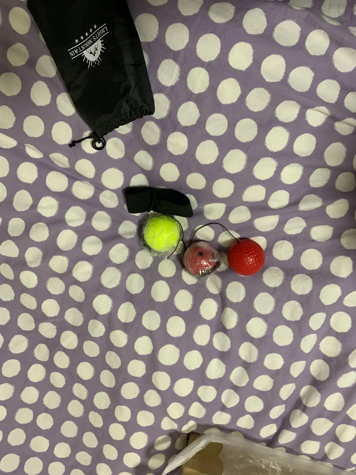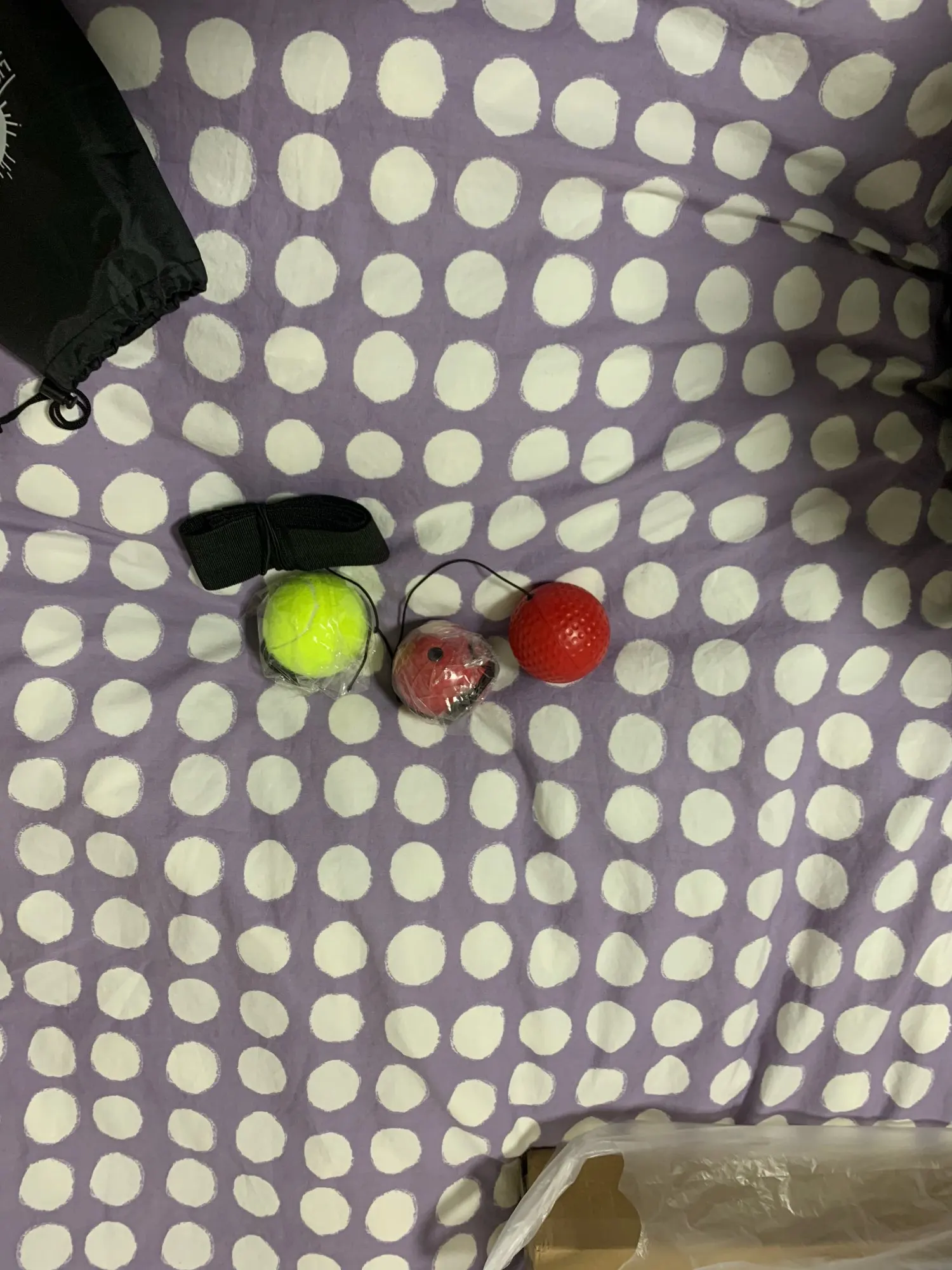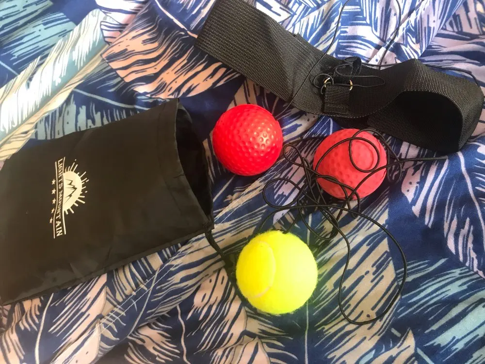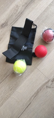 Хороший мяч( как теннисный). Повязка на голову с широкой лентой, что очень комфортно и удобно. Быстрая доставка)