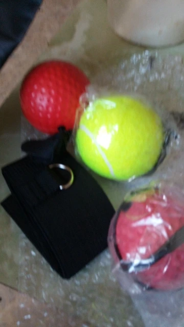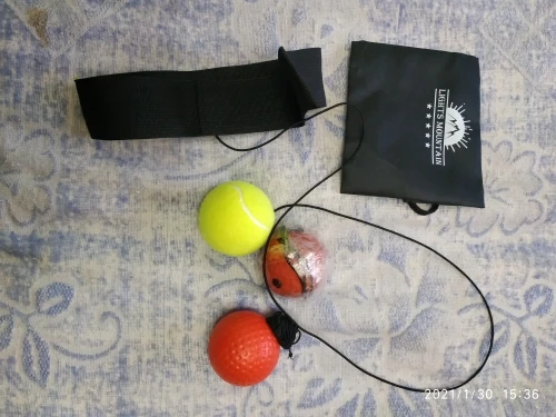 крепление пришло порваным. перчатки из чего-то вроде плотного пенопласта, не резина. перчатки для маленьких рук, мужикам с большими пальцами не пойдут. лёгкий мяч оказался вообще бесполезным, невозможно с ним заниматься. лучше взять боксерские бинты и отдельно купить резинку с теннисным мячом. не рекомендую, не стоит 1000 рублей