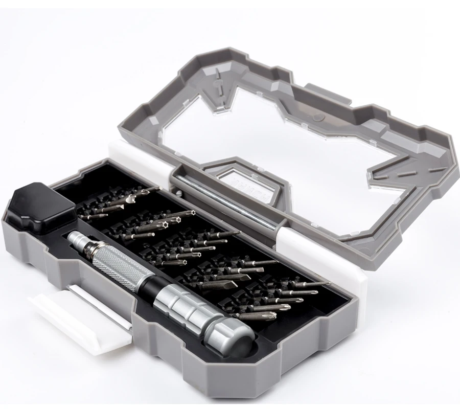 Большое спасибо и продавцу и производителю за товар! Аккуратно и надежно упаковано - пакет, пупырка, картонный короб с прокладкой, защитная пленка на отверточной коробке! Сам набор - высокотехнологичное изделие: удлинитель отвертки фиксируется на любом промежуточном положении и подпружинен (выпрыгивает при нажиме на кольцо фиксатора). Очень приятный инструмент!