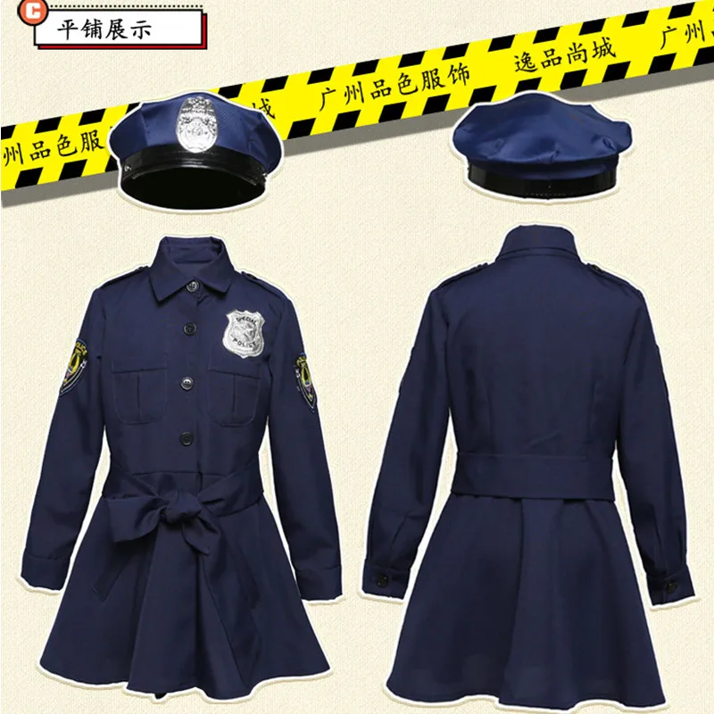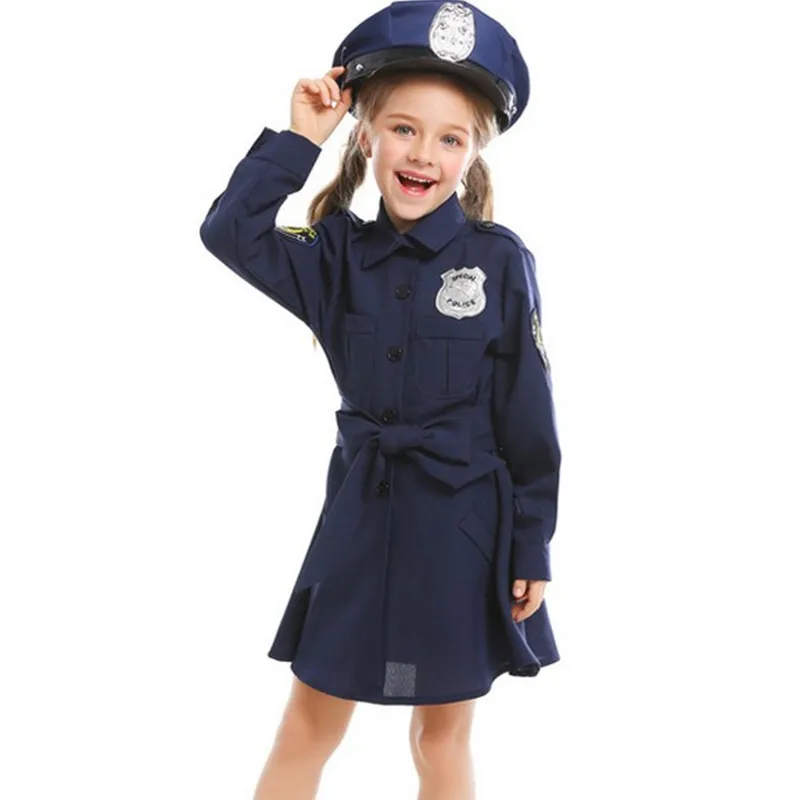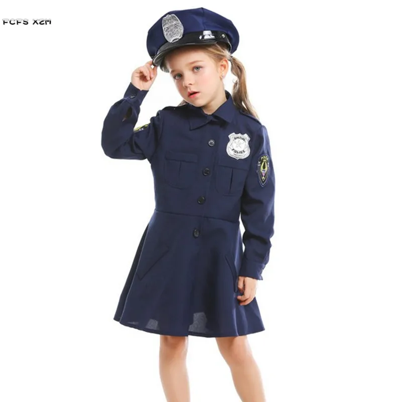 XS-L, для девочек, косплей женщина-полицейский, детское, для Хэллоуина, полиция, униформа, костюмы, карнавал, Пурим, сценическое шоу, ролевые игры, праздничное платье