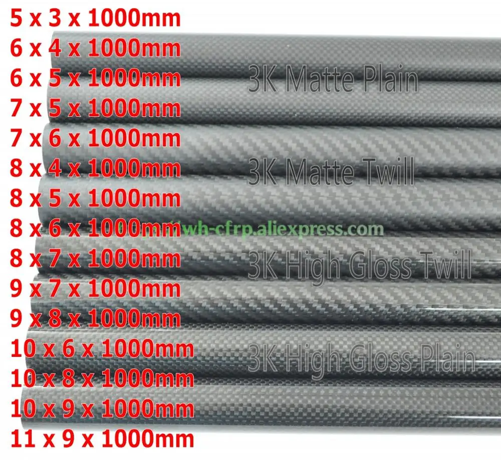 3k трубка из углеродного волокна OD 5 мм 6 мм 7 мм 8 мм 9 мм 10 мм 11 мм X 1000 мм, с 100% полностью углеродным материалом, Япония 3k улучшенная модель DIY