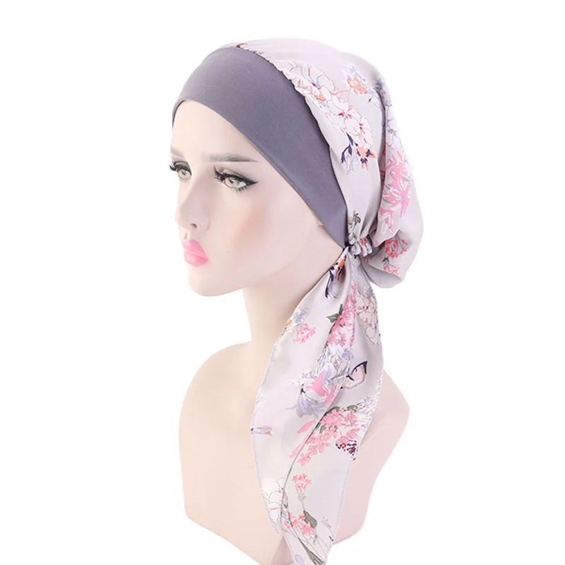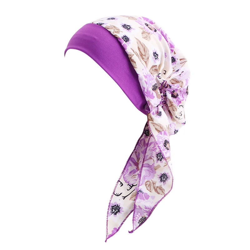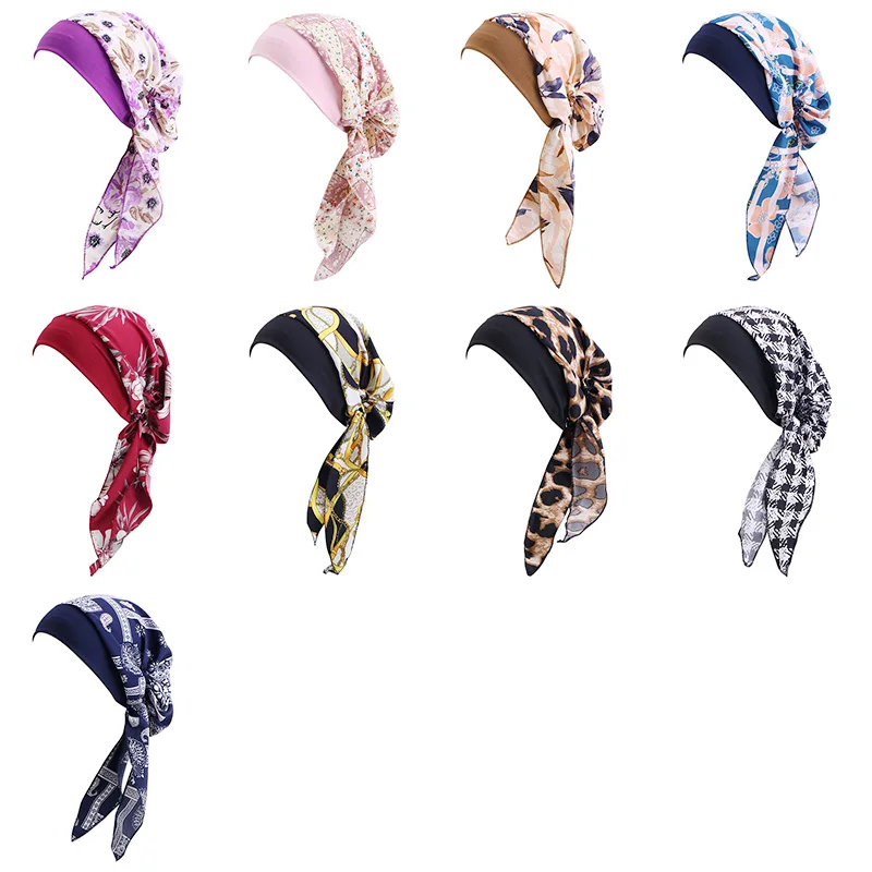 Однотонный тюрбан с принтом перед завязкой для женщин, широкие облегающие шапки, женский стрейч-бандана, головной убор, для ночного рака, Кепка