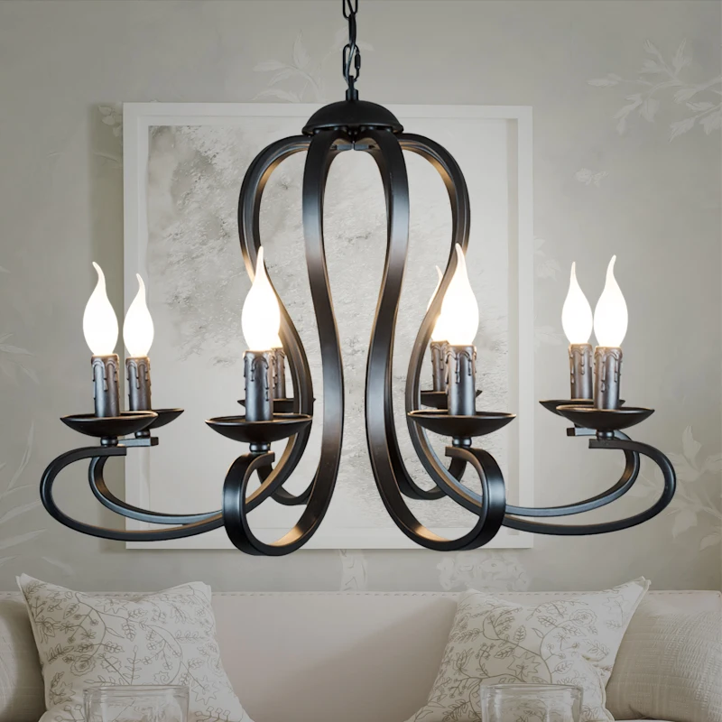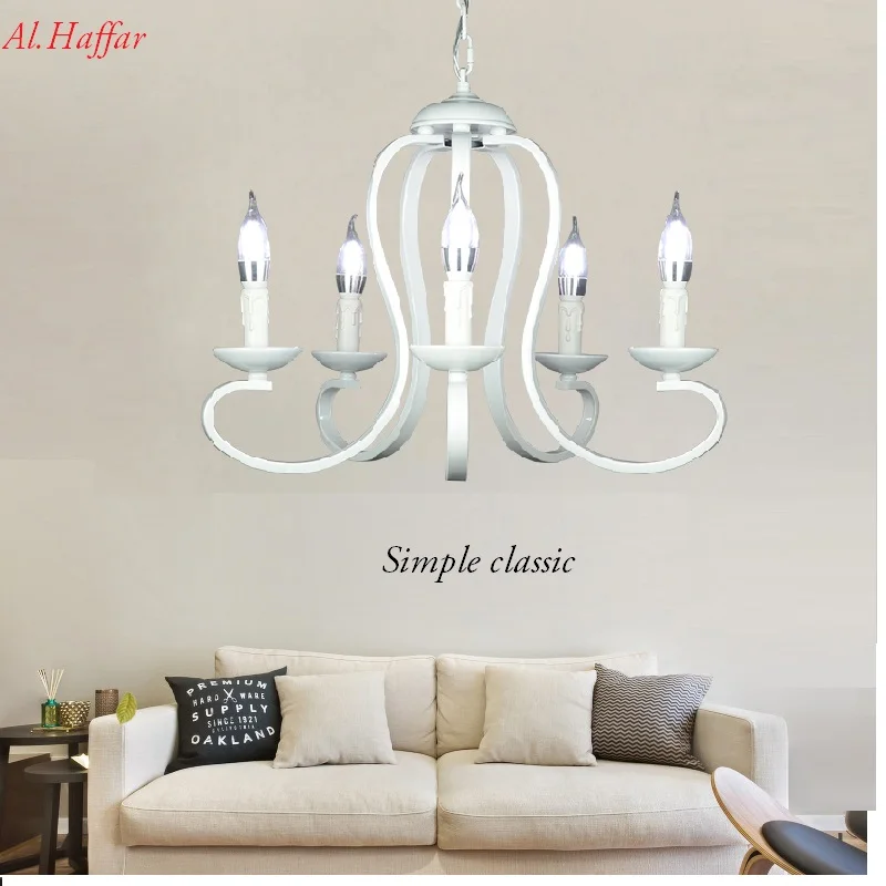Винтажная люстра из кованого железа E14, белый, черный железный светильник, люстра в американском стиле, светильник, светильники