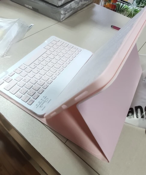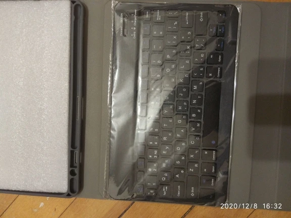 Очень быстрая доставка!!! Пришёл чехол хорошо упакованный, заломов нет. Выполнен качественно. Это не кожа. Но все сделано хорошо. Клавиатура на вид тоже качественная. Продавец в подарок положил пленку для стекла, стикер, за что отдельное спасибо. Взяла на подарок, поэтому ещё не примеряли и не смотрели в действии. Позже отпишусь. Очень надеюсь, что разочарований не будет.
