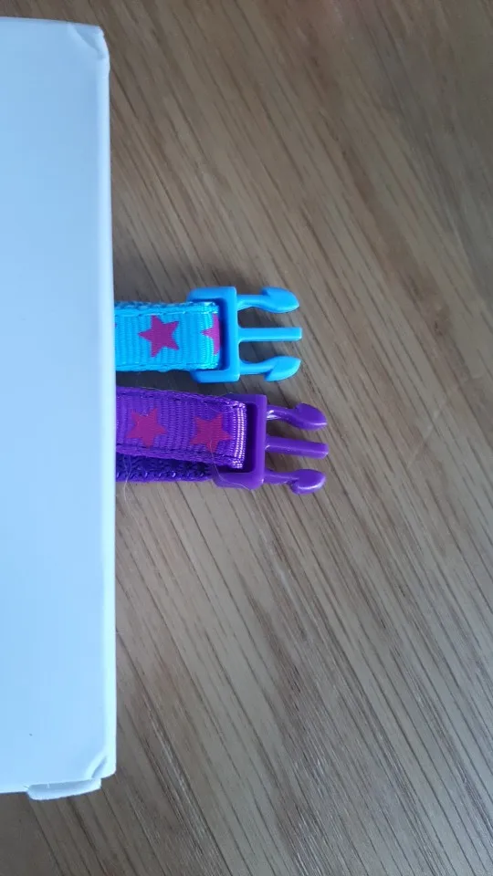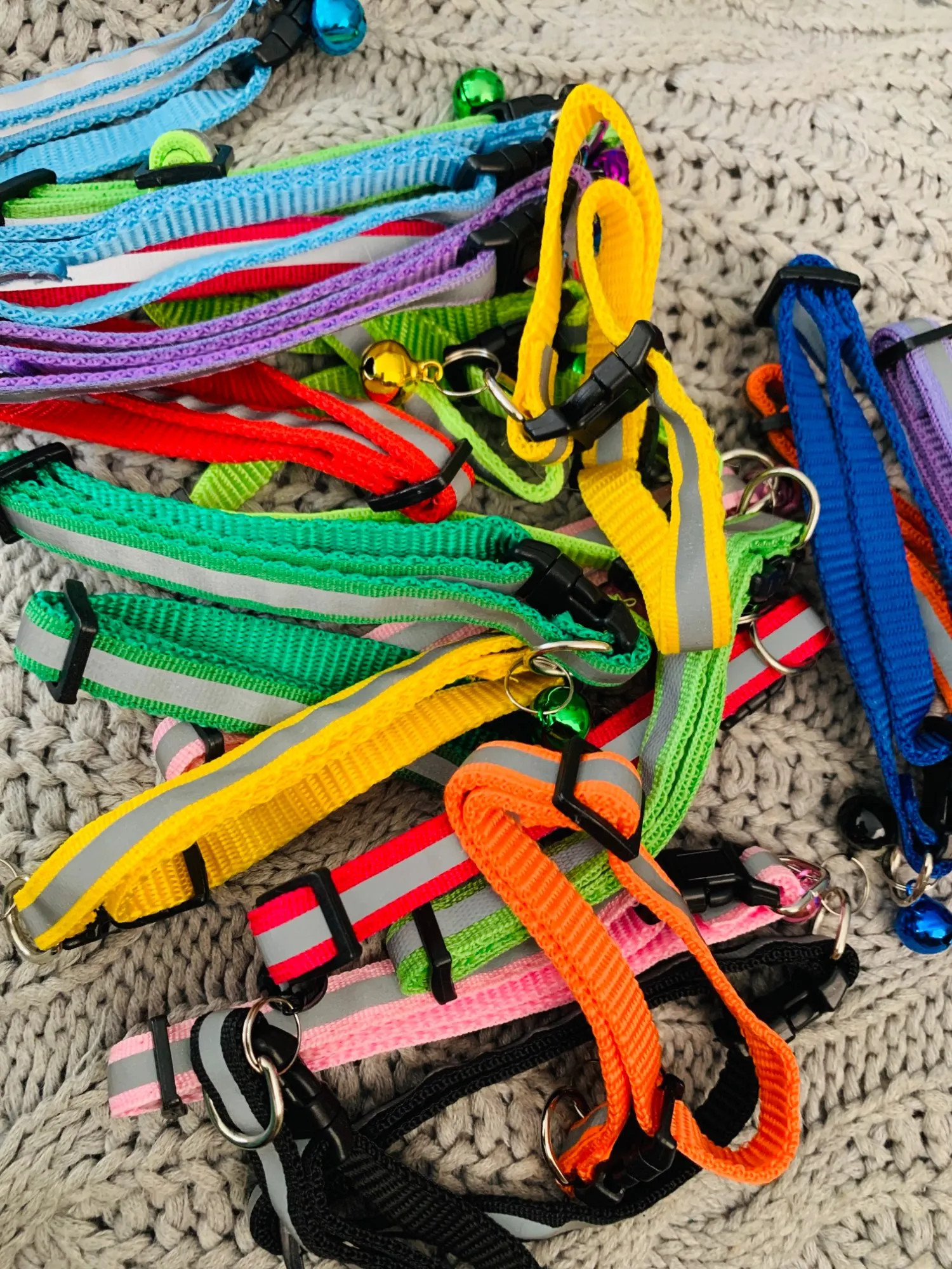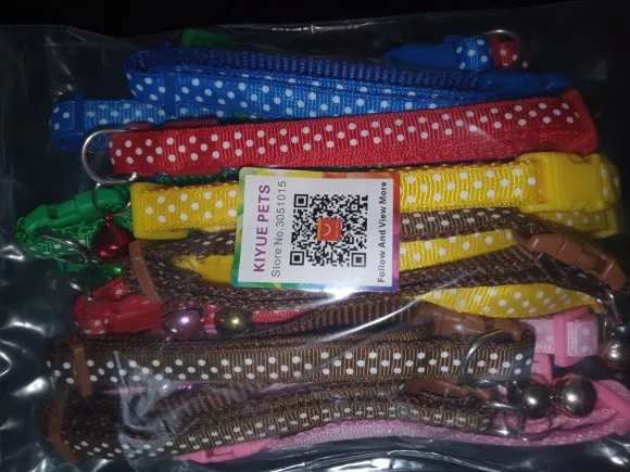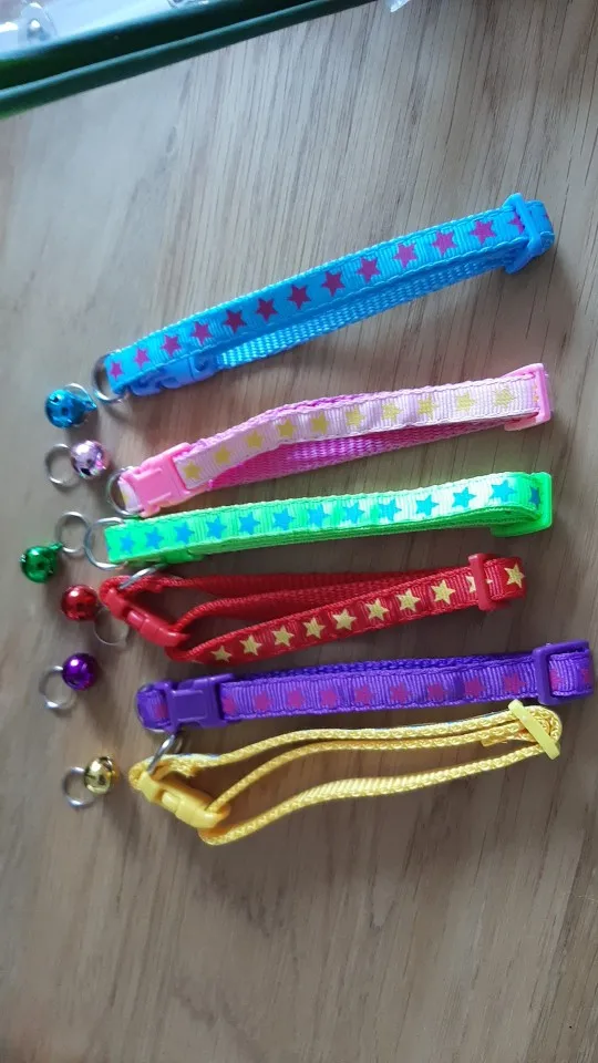 Очень красивые и прочные воротники. Не безопасная Пряжка! Моему кошке это действительно нужно. Каждый воротник имеет Колокольчик в аналогичном цвете. Пряжка легко модифицируется в безопасное положение путем шлифовки наконечников, как я это сделал с фиолетовым на картинке.