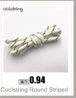 РЕКОМЕНДУЮ К ПОКУПКЕ. Шнурки -СУПЕР ! Цвет темно-фиолетовый. Аккуратные.Пружинят,но не тянутся! Длина 146 см по факту, вместе с "кончиками". Куплены за 1.46 руб. 11 июня с купоном продавца -1$. Доставлены за 66 дней в г.Ярославль на почту России. Трек отслеживался. Упаковка тщательная! Отличный товар !!! Покупала к бордо-лак " Мартинсам."