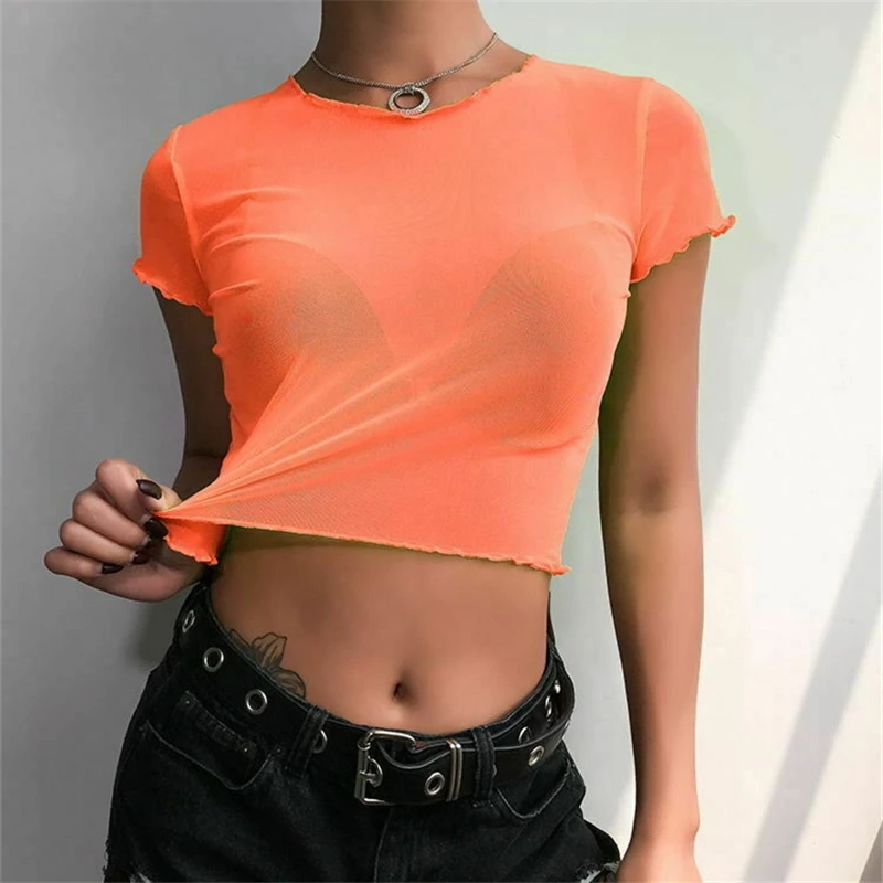 Сексуальный сетчатый прозрачный кроп-Топ для женщин и девочек, новинка, модная женская уличная одежда, прозрачная короткая футболка, топы, лето 2019