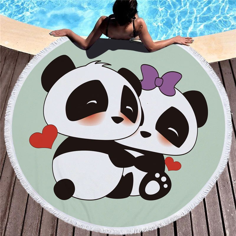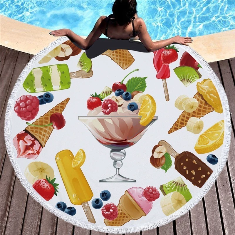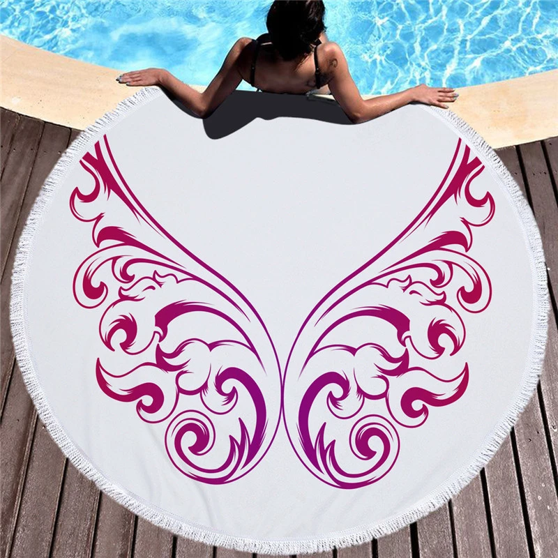 Круглое банное полотенце из микрофибры с принтом, с кисточками