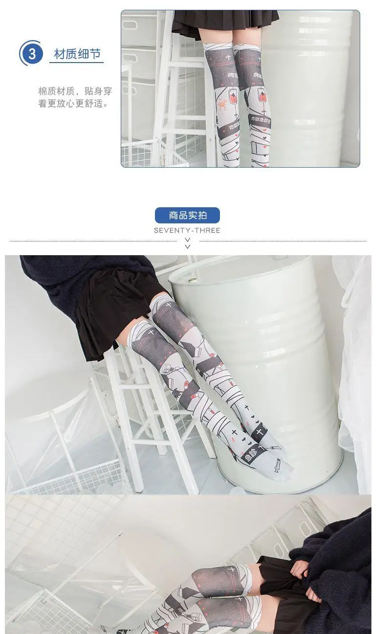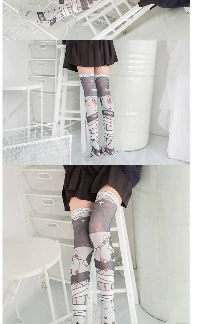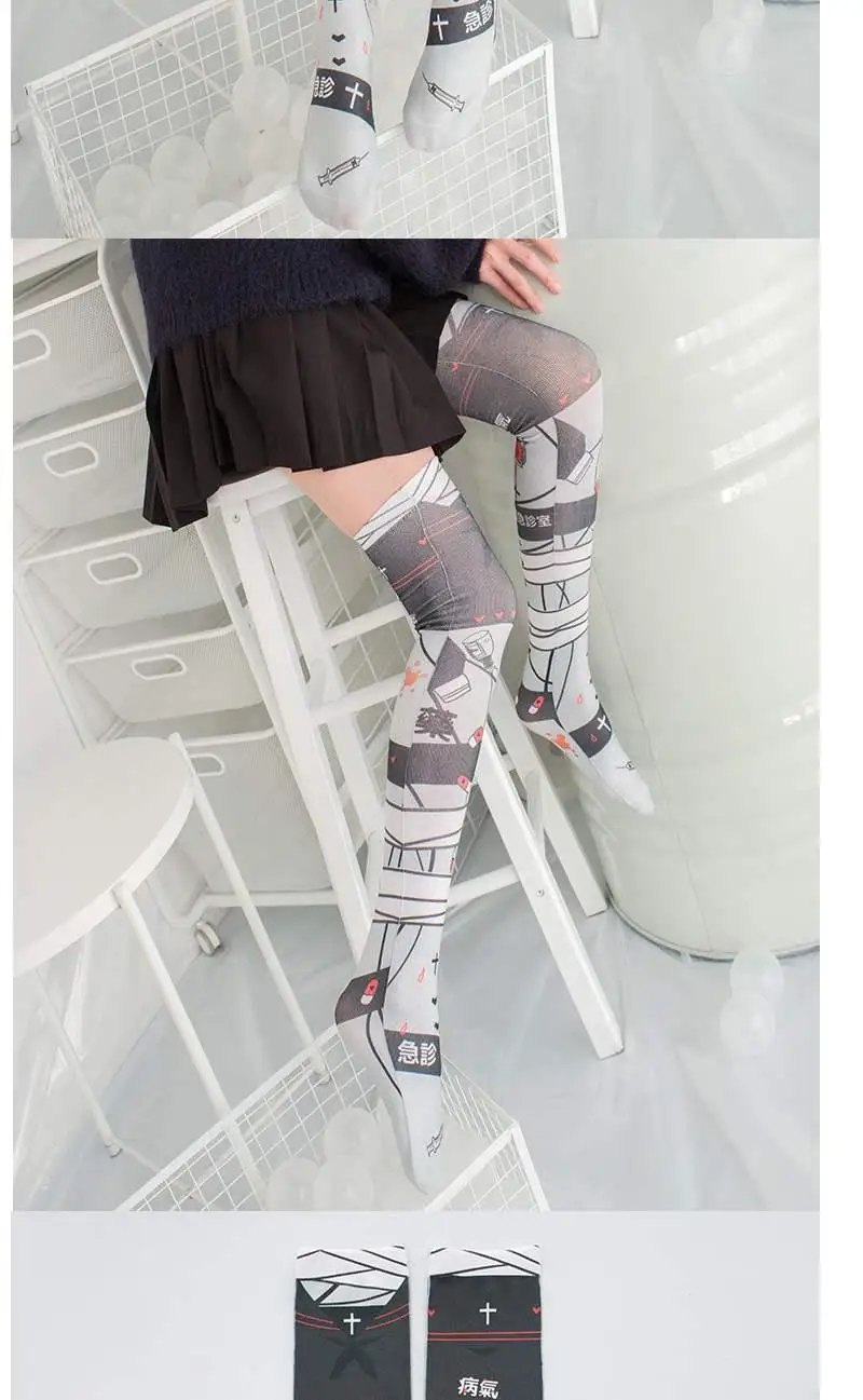 Модные чулки с принтом, женские нейлоновые чулки до бедра, женские модные длинные чулки в стиле Харадзюку, женские тонкие чулки, Новинка