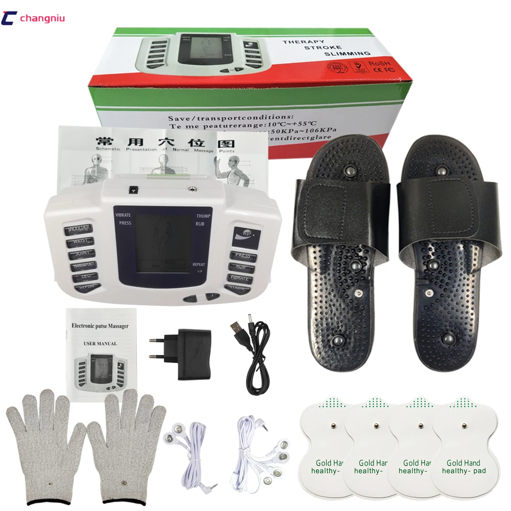 Электрический стимулятор для всего тела, расслабляющий массажер для мышечной терапии, импульсная Акупунктура с терапевтическими тапочками + 4 подушечки + перчатки, 309A
